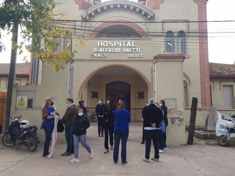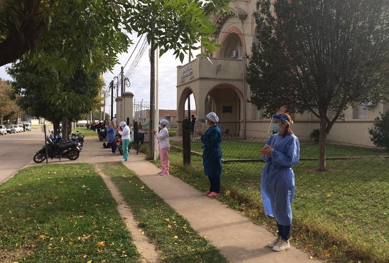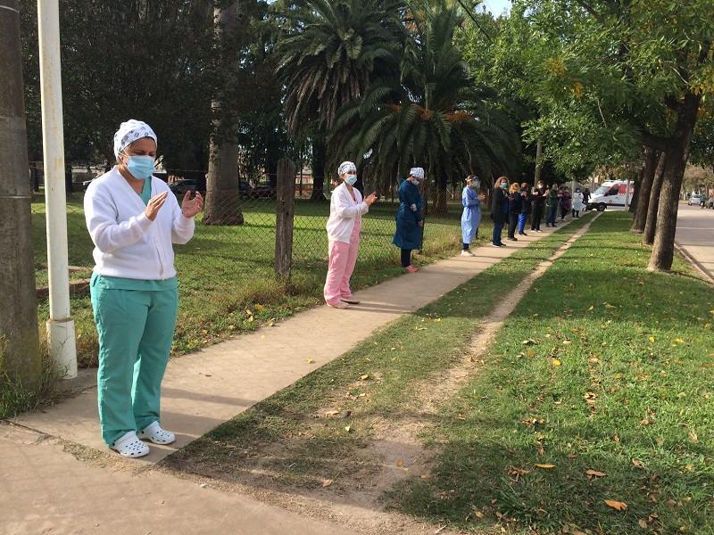 Un abrazo simbólico al Hospital SAMCo se realizó en la mañana de este martes con la participación de parte del equipo de salud que trabaja en el nosocomio local. Con un aplauso sostenido los trabajadores se distribuyeron a lo largo del amplio frente del efector público que por estos días, y desde que comenzó la pandemia, intensificó su atención hacia toda la comunidad y la zona de influencia.