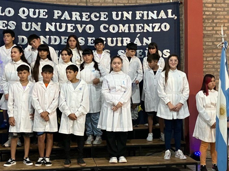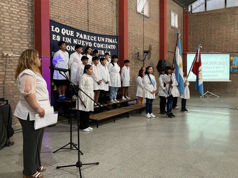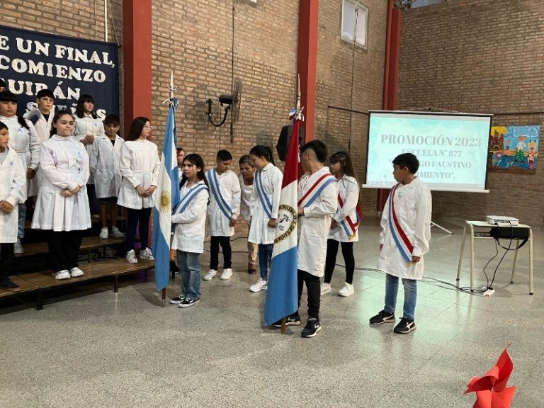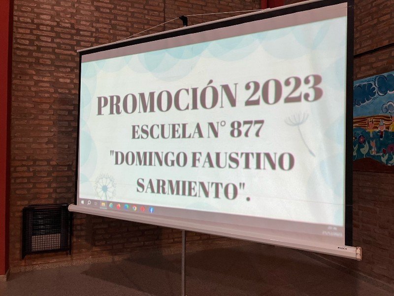 La Escuela N°877 «Domingo Faustino Sarmiento» promocionó a sus alumnos que finalizaron 7mo grado en este ciclo lectivo 2023. El acto se realizó este jueves por la noche en el SUM escolar y contó con la presencia de las familias que acompañaron a los flamantes egresados.