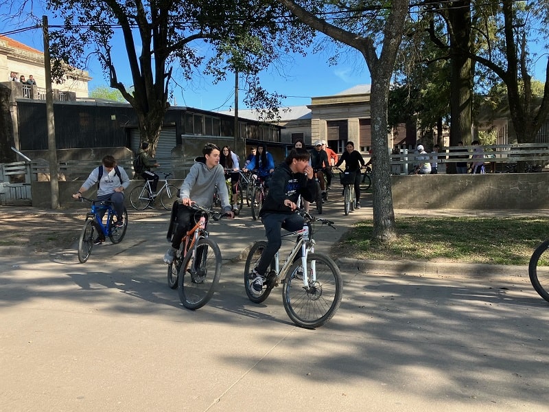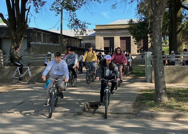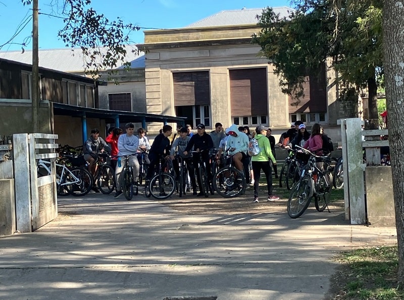 En un proyecto realizado de manera conjunta entre la Comuna de Campo Piaggio, la Escuela N°456 Hipólito Irigoyen y la comunidad católica, este viernes por la mañana alumnos de la institución junto a docentes participaron de una bicicleteada con destino a la vecina localidad para comenzar con la instalación de las seis primeras cruces de las estaciones del Via Crucis que unirá las Capillas de San Pancracio y San Ignacio de Loyola.