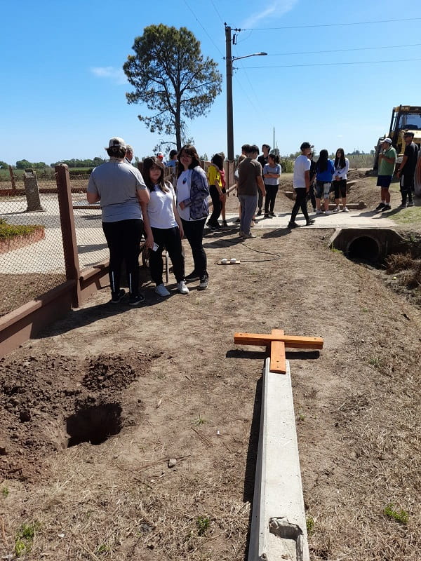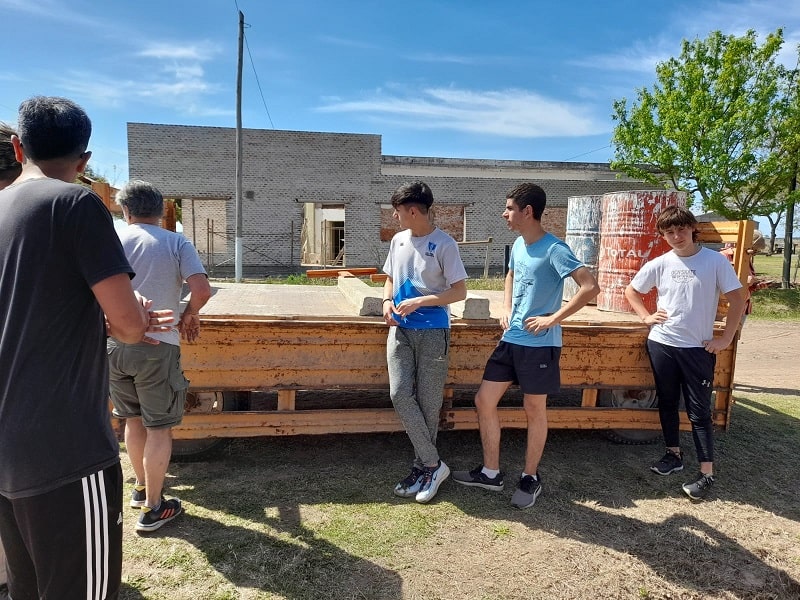 El docente Marcelo Quian manifestó que «es un proyecto que estamos trabajando desde marzo, para llegar a este momento en en el que sacamos a la Escuela afuera para instalar las columnas de hormigón con sus cruces de madera».