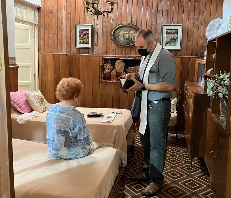 Acompañada de familiares, amigos, vecinos y conocidos, la centenaria vecina galvense recibió la bendición del Padre Carlos y festejó un año más de vida como anfitriona en su hogar.