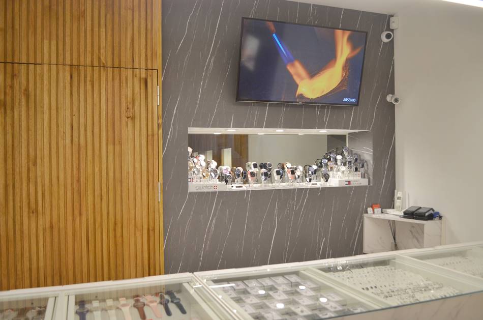 Entrar a ARSENIO -cuyo nombre alude al dios de los metales en la mitología- es llenarse los ojos y el alma, especialmente para el público femenino. Entre las novedades, «se pueden encontrar con una gran variedad en todo tipo de piezas, ya sea en aros, cadenas o dijes, o marcas de primera línea en relojería suiza», con exhibidores que muestran joyas de oro y plata, creaciones de Swarovski, relojes, y en las paredes, imágenes de la labor que se realiza en el «detrás de escena». «Porque estamos respaldados por un taller estilo fábrica, donde realmente se cubren todas las necesidades que se demandan, desde reparaciones como en diseños nuevos, en composturas, en todo lo que sea service de relojería… Tenemos la suerte de poder hacer todo en este lugar, sin tener que derivar nada», explicó Sergio a GálvezHOY, en la previa a la recepción de familiares y amigos que compartieron el momento y brindaron por esta moderna propuesta.