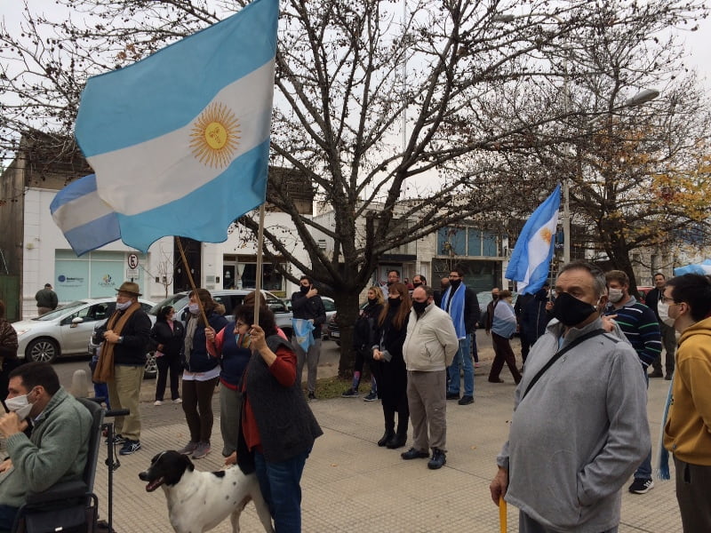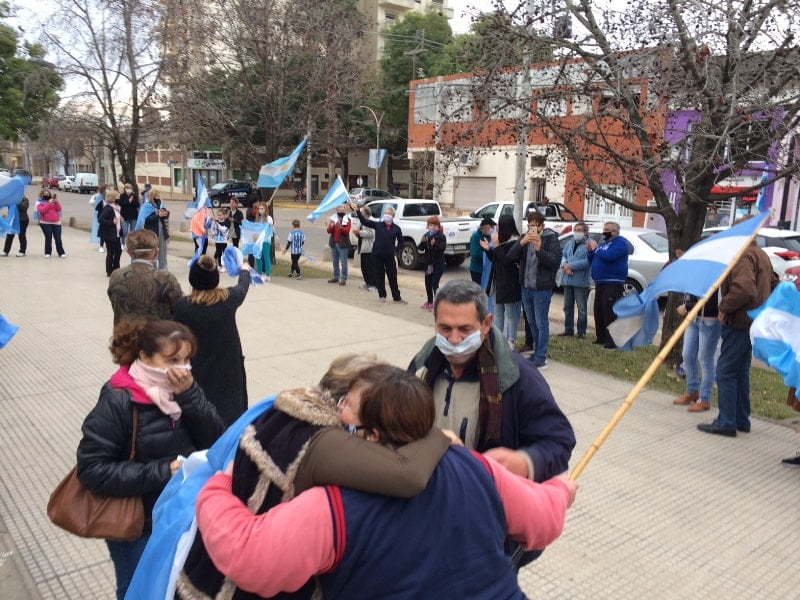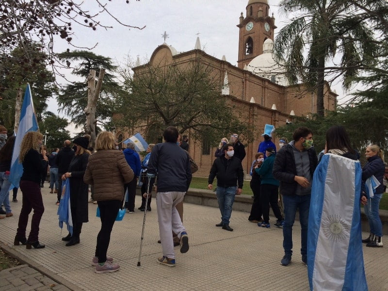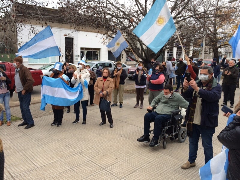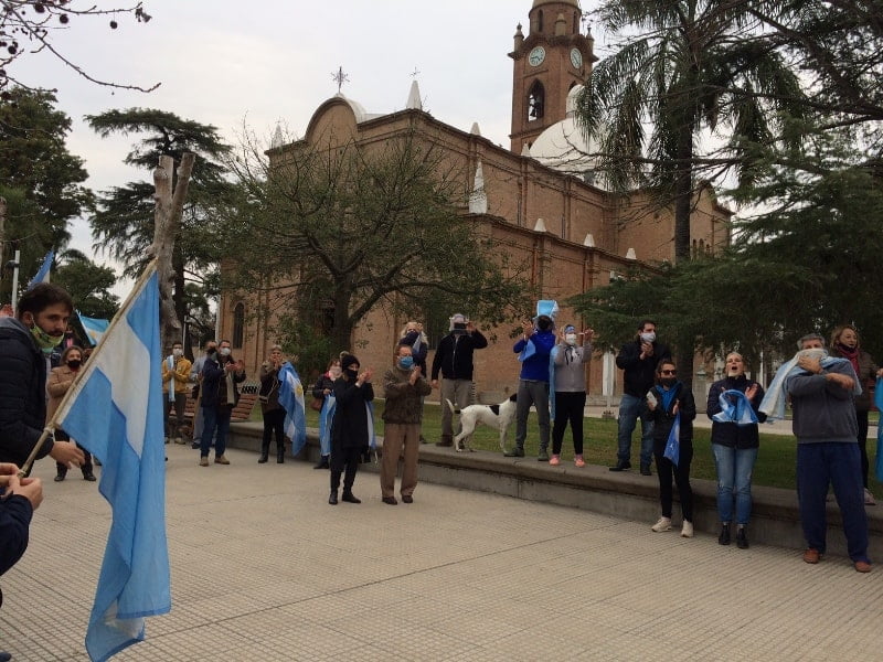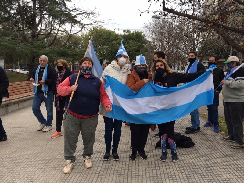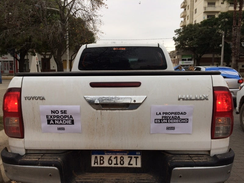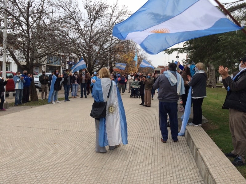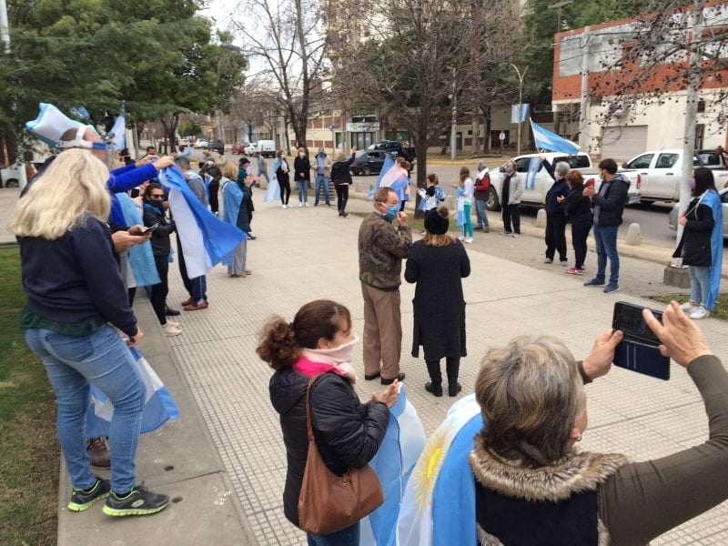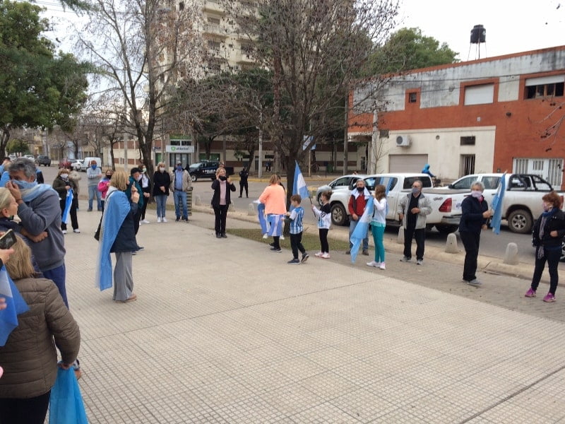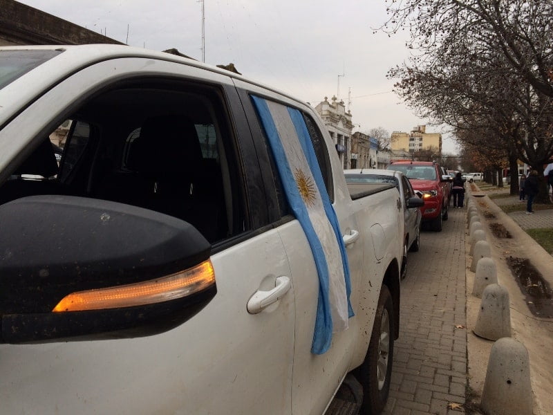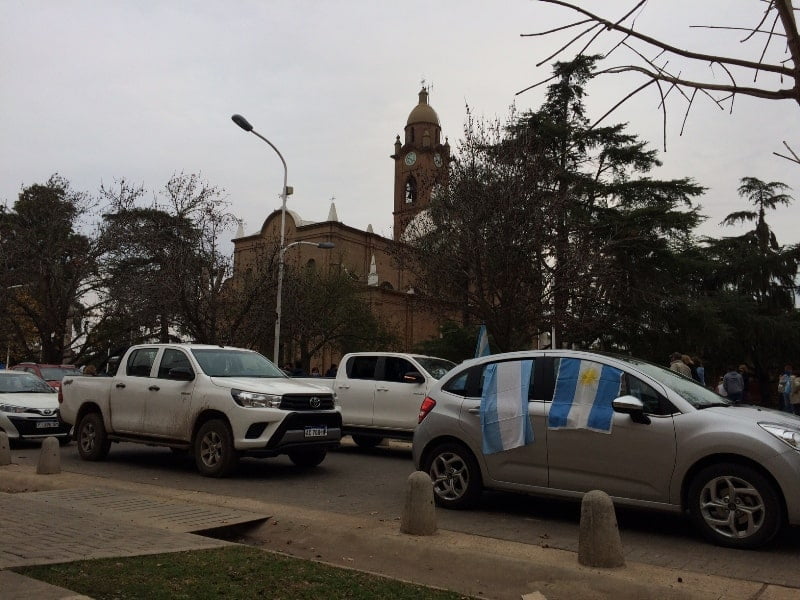Una importante caravana de vehículos, la mayoría con la bandera argentina, marchó por la ciudad desde las 16 horas para terminar en la Plaza Central donde se cantó el Himno Nacional «en defensa de la propiedad privada» y rechazo a la decisión del Gobierno nacional de expropiar la empresa santafesina Vicentín.