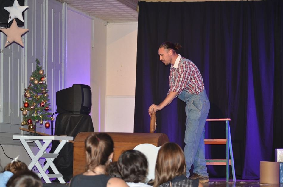La Biblio vivió este domingo una propuesta diferente. La autora Betina Ortiz y el grupo de teatro MasCaritas, conjugaron sus habilidades para hacer «CUENTO VIVO», una actividad donde los integrantes de la agrupación le pusieron vida a tres cuentos infantiles. Y desde la platea, compuesta por padres y niños, los peques interactuaron con los actores, rieron, disfrutaron…