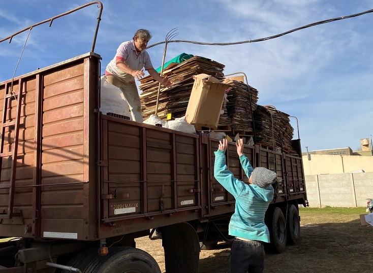 La organización «Cartón LLeno» concretó en la mañana de este martes la cuarta carga de cartones y papeles que acopian en el depósito de calle Pedro Palacios 974.