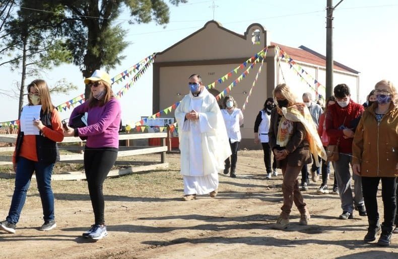 Con una importante cantidad de vecinos que acompañaron al Jefe Comunal, Adrián D’Angelo, la ceremonia religiosa estuvo a cargo del Párroco de la ciudad de Gálvez, Padre Carlos Magnano, quien entendió que «conmemorar una Fiesta Patronal es celebrar nuestra identidad y volver a nuestros orígenes».