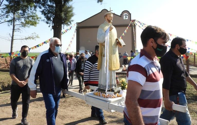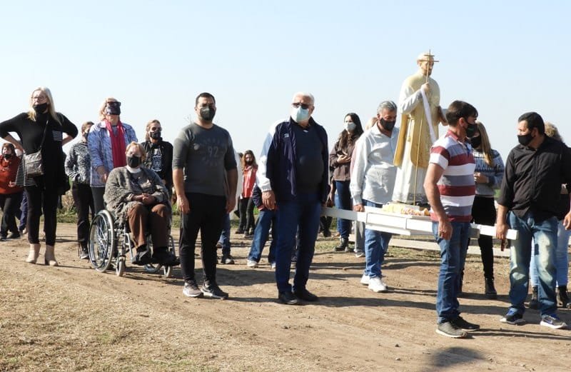 A diferencia de otros años, en los que se llevaba a cabo la tradicional procesión con un recorrido de seis kilómetros desde el arco de ingreso hasta el poblado, este sábado se congregaron los devotos en el pueblo para recorrer con la imagen del Santo el trayecto que une a la renovada Capilla hasta la Escuela y luego celebrar la misa.