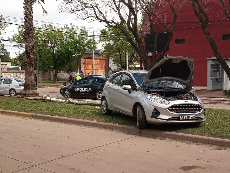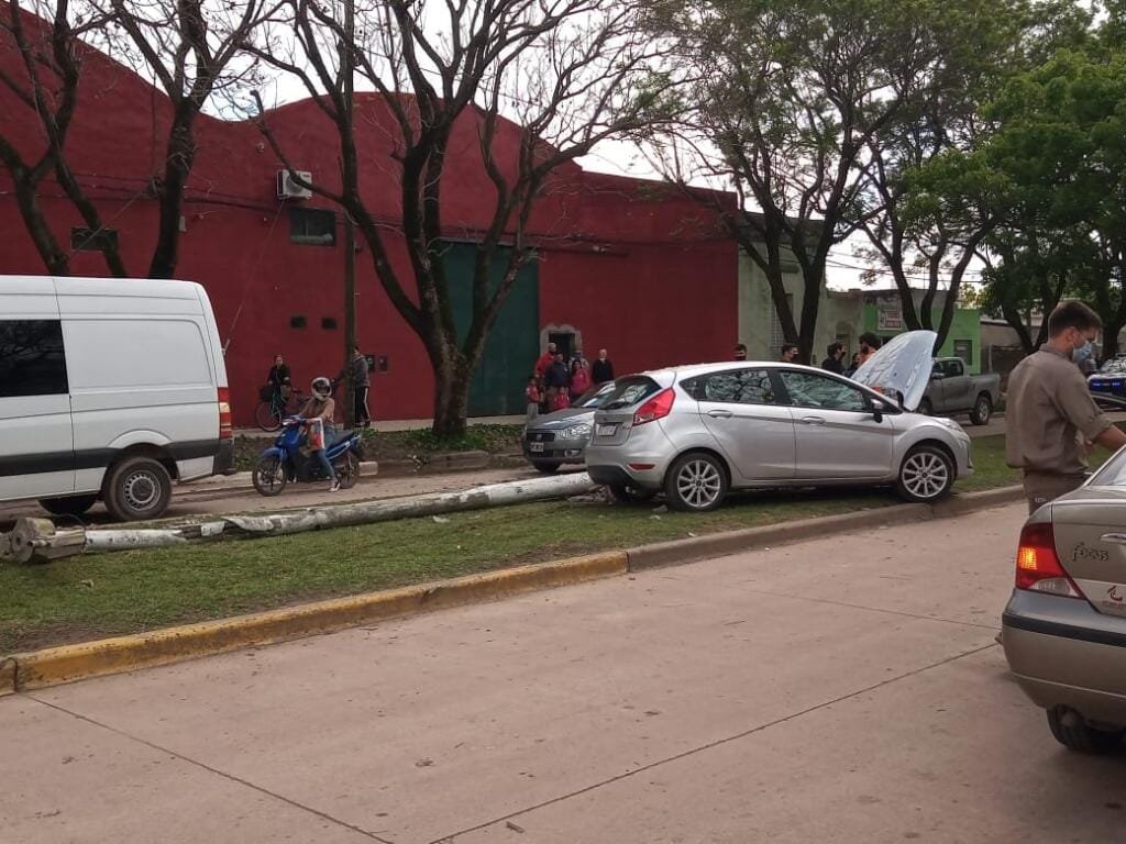 Colisionaron dos vehículos y uno terminó contra una columna de alumbrado