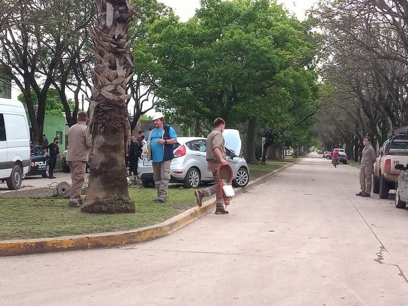 Se hace constar que a raíz de la colisión, el automóvil Ford impacta contra una columna de alumbrado público del cantero central de la avenida.