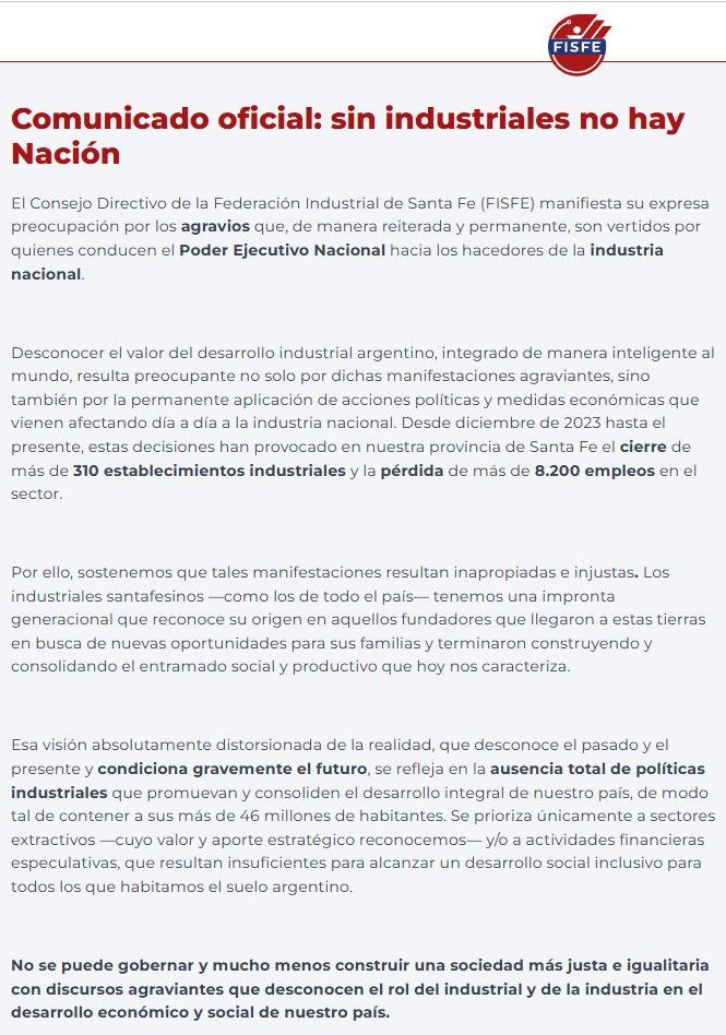 Tras recientes cruces con el gobierno nacional sobre la situación actual, los industriales santafesinos alineados con la Federación de Industriales de Santa Fe (FISFE) decidieron responder «con fuerza de trabajo», aunque manifestaron su rechazo a los agravios recibidos. El punto central del reclamo no es el pedido de subsidios, sino la competitividad. «No somos prebendarios, queremos que igualen las condiciones. Si vamos a competir con China o Brasil, necesitamos que nos bajen la carga impositiva. Hoy, producir una tolva en Argentina cuesta un 37% más en impuestos que en Brasil», señaló.