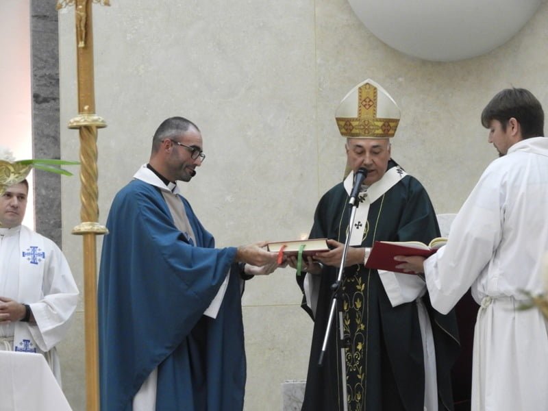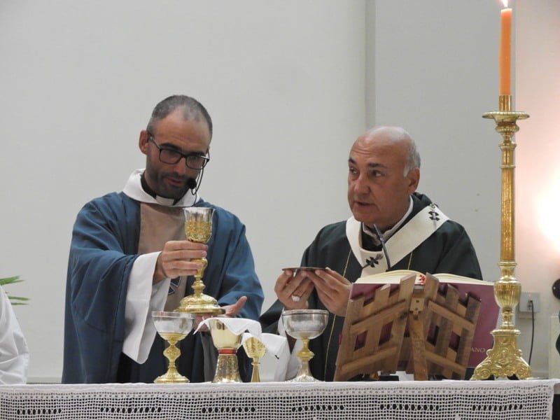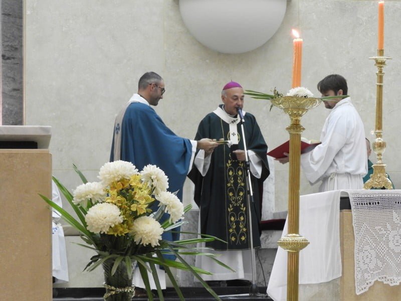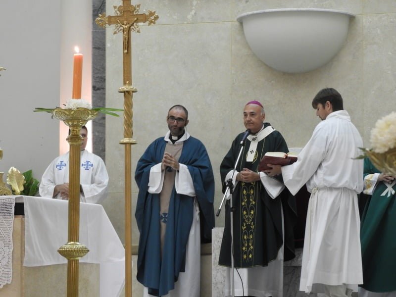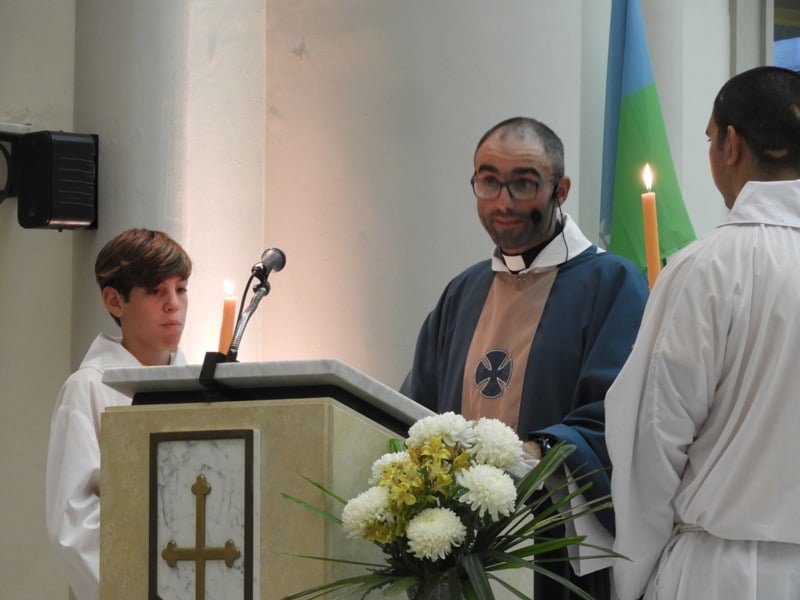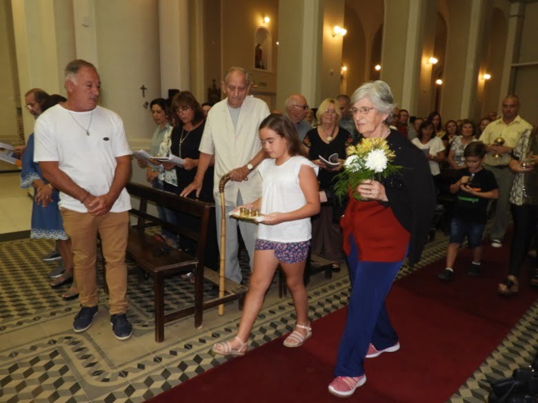 Durante la misa, el flamante Párroco recibió la llave del sagrario y confesó «es hermoso que se me confíe ésto, por eso trabajaremos con el lema «Cristo en mí se hace comunidad para que el mundo crea y eso es lo que me propongo con la ayuda de ustedes y de Dios».