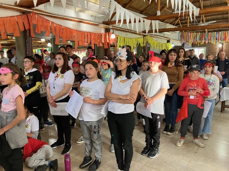 Aproximadamente 150 niños y jóvenes representantes de 17 comunidades de la Arquidiócesis de Santa Fe y acompañados por gran cantidad de animadores y servidores participaron del encuentro que se llevó a cabo en el predio de ATILRA y que tiene como objetivo que «los católicos desde chiquititos tomemos conciencia que si somos bautizados tenemos que ser misioneros, llevar el amor de Jesús a todos y la alegría de ser amigos de Jesús», comentó en diálogo con GálvezHOY el referente del movimiento IAM, Padre Nicolás Carrel.