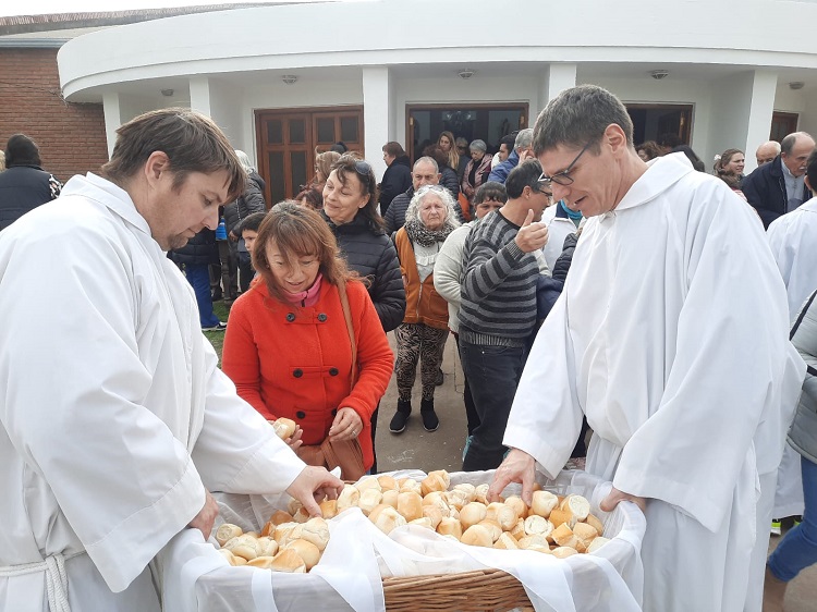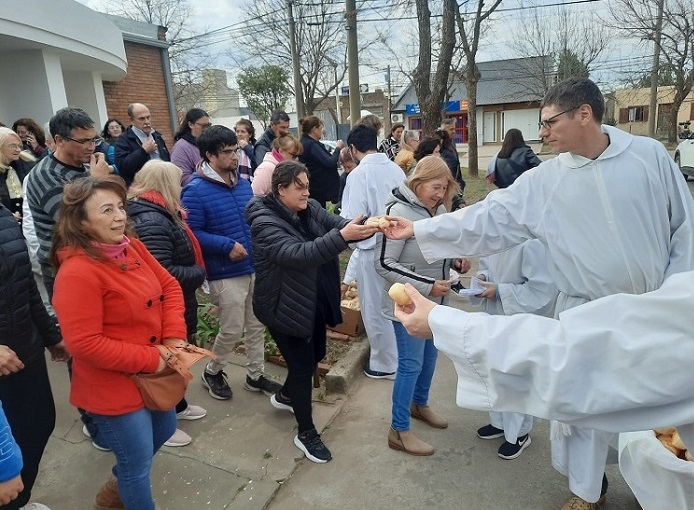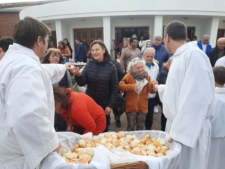 Al finalizar la ceremonia religiosa se llevó a cabo la tradicional entrega de panes.