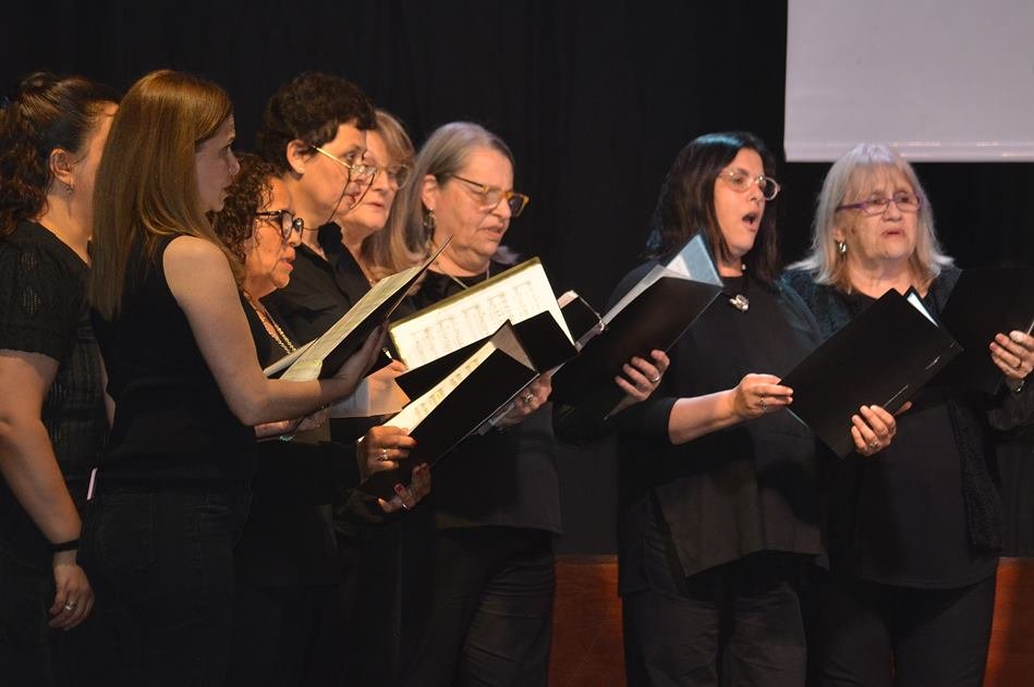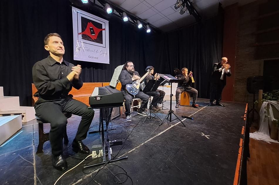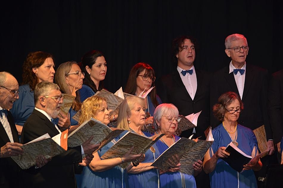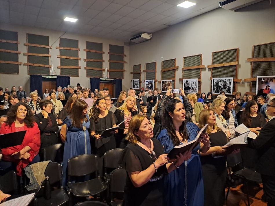 Las palabras de bienvenida estuvieron a cargo de Valeria Noste, directora de Cultura del Municipio, y de inmediato subió al escenario de la Casa de la Historia y la Cultura del Bicentenario, el Coro Polifónico Municipal con la dirección del maestro Pablo Liñán. En esta oportunidad, los galvenses tuvieron un invitado especial en el piano: el maestro Néstor Mozzoni, quien fuera director del Coro por casi dos décadas.