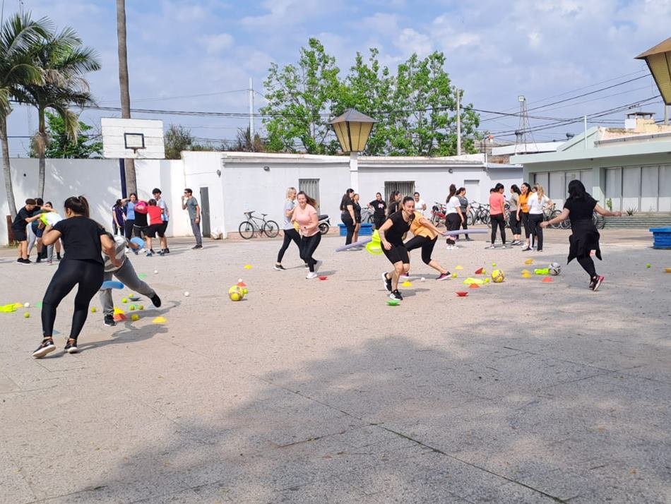 La actividad se desarrolló en el Tropezón porque «nuestra vecinal está abierta al público en general, apoyando siempre la educación, que es el futuro de nuestro país, en todos los niveles. Este año el Instituto ha estado todo el año haciendo actividad aquí, y seguramente estaremos por muchos años más trabajando. Nuestra vecinal es amplia a muchas actividades, y sus puertas están abiertas para seguir creciendo», apuntó Juan Panzerini, de la CD de la entidad barrial, en tanto que Paula Pronello, la coordinadora del Profesorado de Educación Física explicó lo desarrollado este viernes: «Comenzamos con una propuesta masiva donde intentamos relacionar a los alumnos de todos los profesorados. En este momento están haciendo un trabajo por estaciones, se conformaron grupos y, de manera rotativa, van pasando por las diferentes paradas. Seguramente, ellos reconocen diferentes propuestas que van a poder emplear cuando se inserten en el mundo laboral. Por ejemplo hoy pueden cantar, hay estaciones de tipo deportivas, otras de tipo recreativas, otras artísticas».