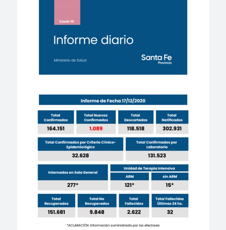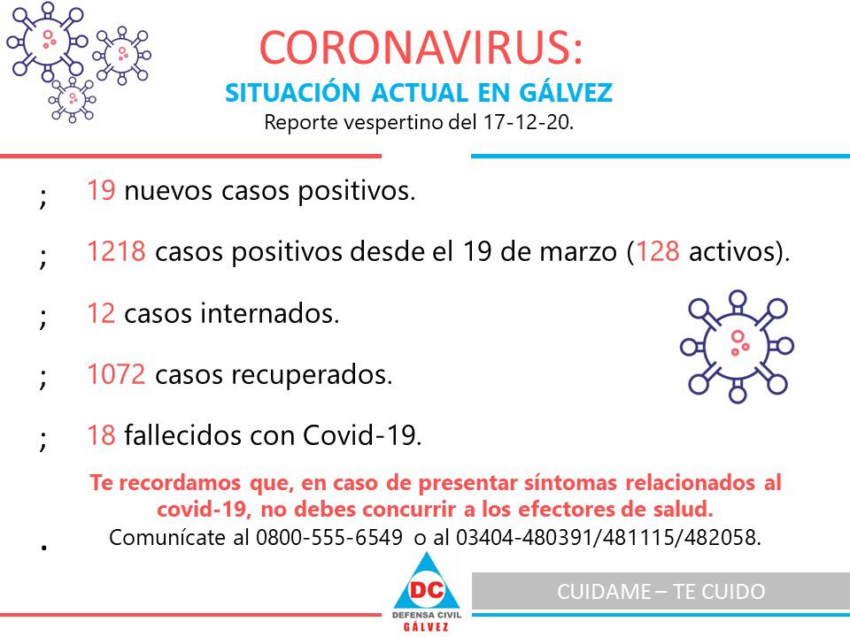La Junta de Defensa Civil informó el jueves por la tarde 19 nuevos casos en la ciudad. Así Gálvez suma 1218 positivos desde el comienzo de la pandemia el 19 de marzo.