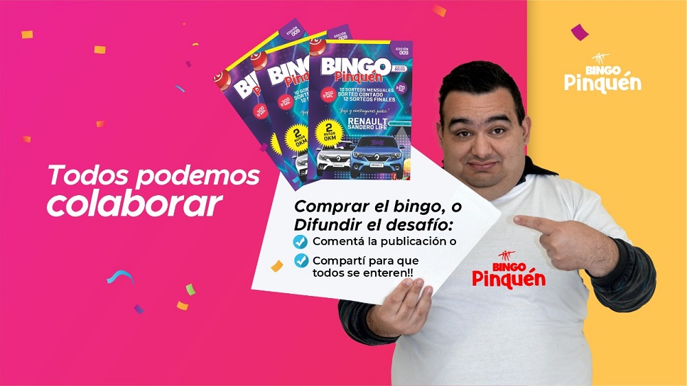 Para adquirir el Bingo -que tiene un costo de $9000 y se puede abonar hasta en 3 cuotas-, comunicarse al teléfono 3404 63-6691 o acercase a la institución. También se puede compartir la noticia en redes para que llegue a más gente. Todos podemos colaborar. Desde Pinquén invitan a sumarse al Desafío!