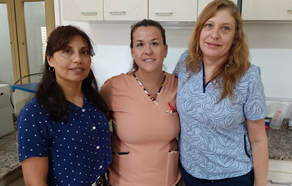 Melina Albornoz, Natalia Giorgiani y Elizabeth Scaglia, del laboratorio del Hospital SAMCo Gálvez.