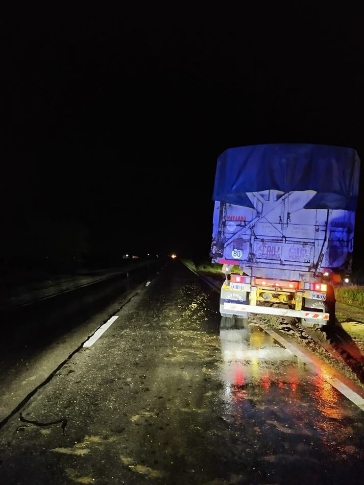 El conductor, domiciliado en La Rubia, Provincia de Santa Fe, iba camino a la ciudad de Puerto San Martín. El cereal quedó desparramado sobre la carpeta asfáltica en ambos carriles, por lo que se solicitó la colaboración de bomberos de la ciudad para quitarlo.