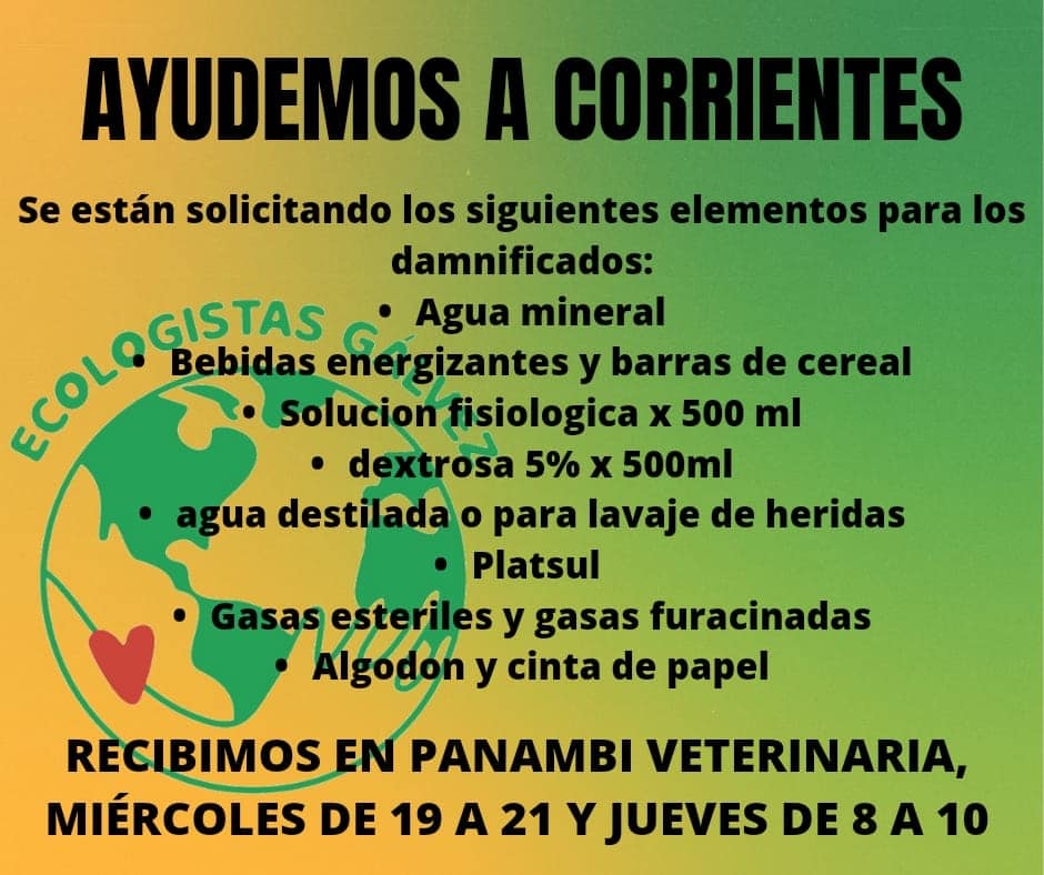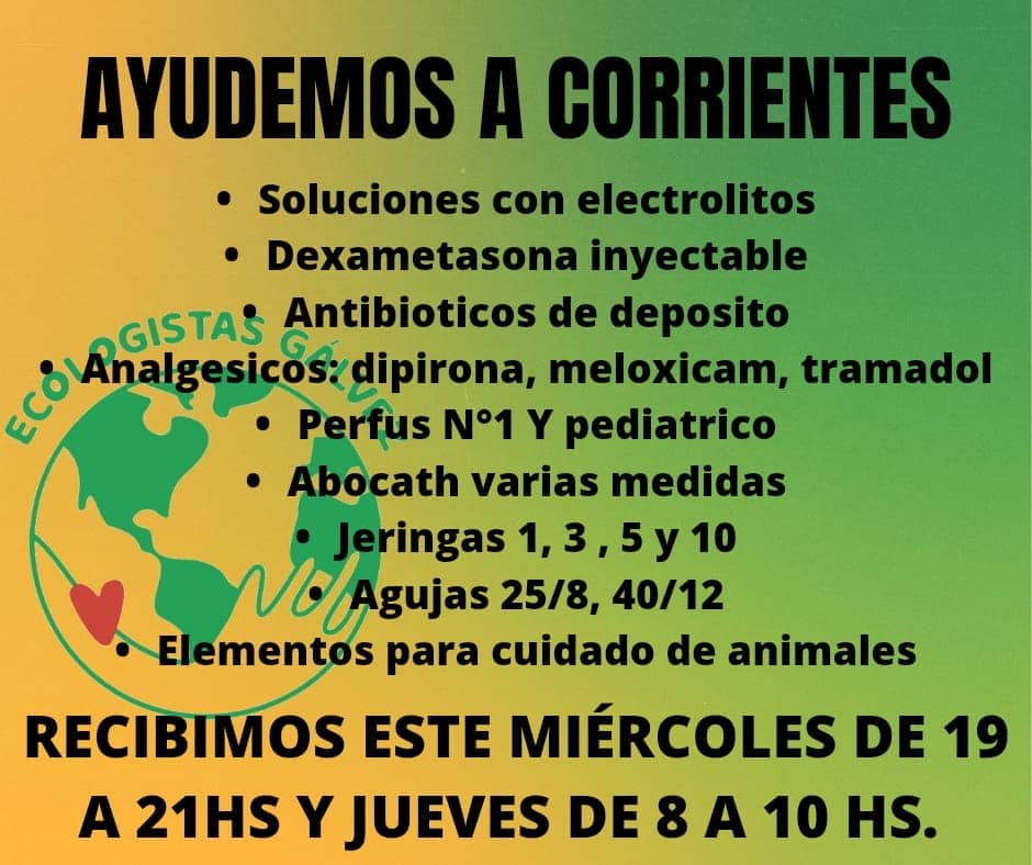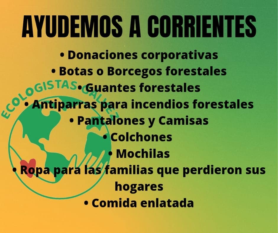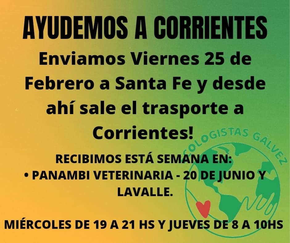 A propósito del desastre que está sucediendo en Corrientes desde el Grupo Ecologistas Gálvez invitan a la localidad a solidarizarse con los heridos, bomberos, animales y personas que perdieron sus hogares de la provincia y acercamos sus donaciones.