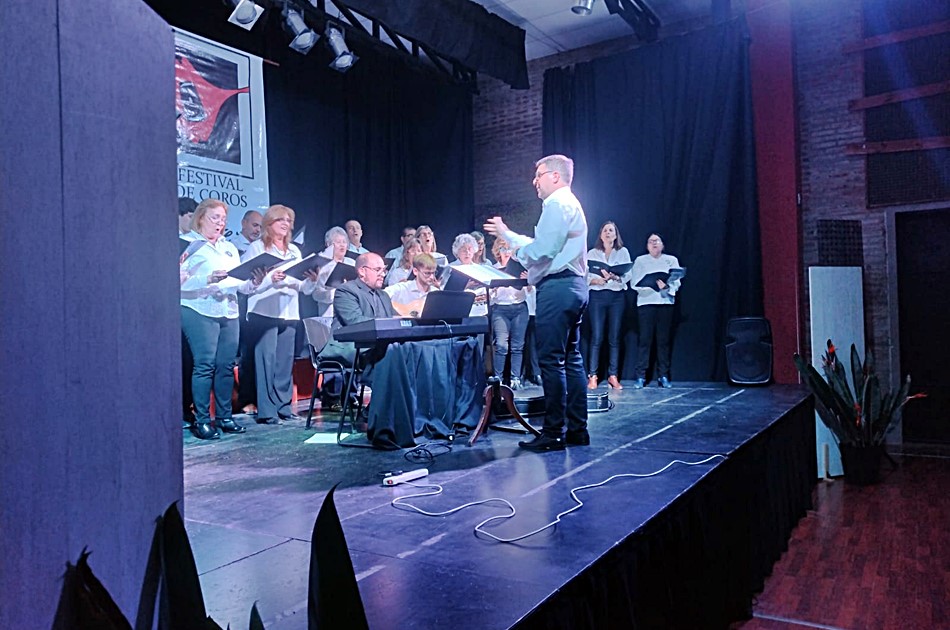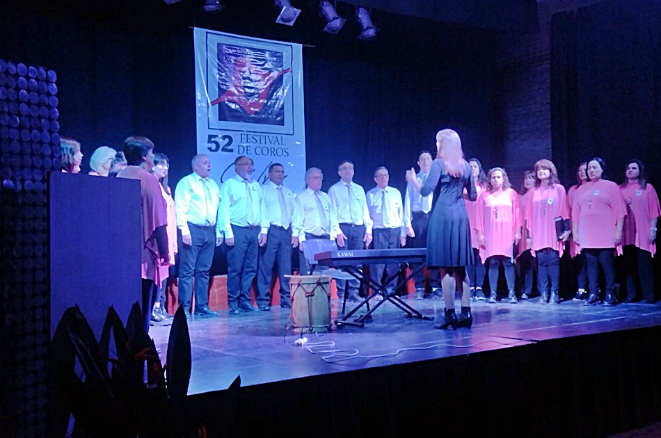 En la noche del sábado, la Casa de la Historia y la Cultura vivió un nuevo festival de coros, en esta oportunidad de carácter internacional porque visita la ciudad un coro de Montevideo, Uruguay. A sala llena, fueron 5 agrupaciones las que se sucedieron en el escenario, presentando distintas propuestas musicales -que trajeron al escenario desde composiciones tradicionales, pasando por el folklore latinoamericano y hasta Fito Páez o Charly García-, y recibiendo el cariñoso aplauso de los presentes.