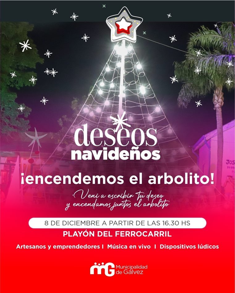 «Estamos a pleno preparando la Navidad en Gálvez, hoy ya con una etapa que se llama Deseos Navideños Colectivos. Estamos trabajando con instituciones y a partir del 22 de diciembre, en el hall de la Casa de la Historia y la Cultura, va a estar la muestra que estamos proyectando», explicó la directora del área Valeria Noste, entendiendo que «cada una de las instituciones está trabajando con su comunidad los deseos colectivos de esa gente, de ese grupo de gente para nuestra ciudad y para la vida en general. Y después, con ese mismo espíritu de deseos navideños, el día 8 de diciembre vamos a estar haciendo el encendido del arbolito«.