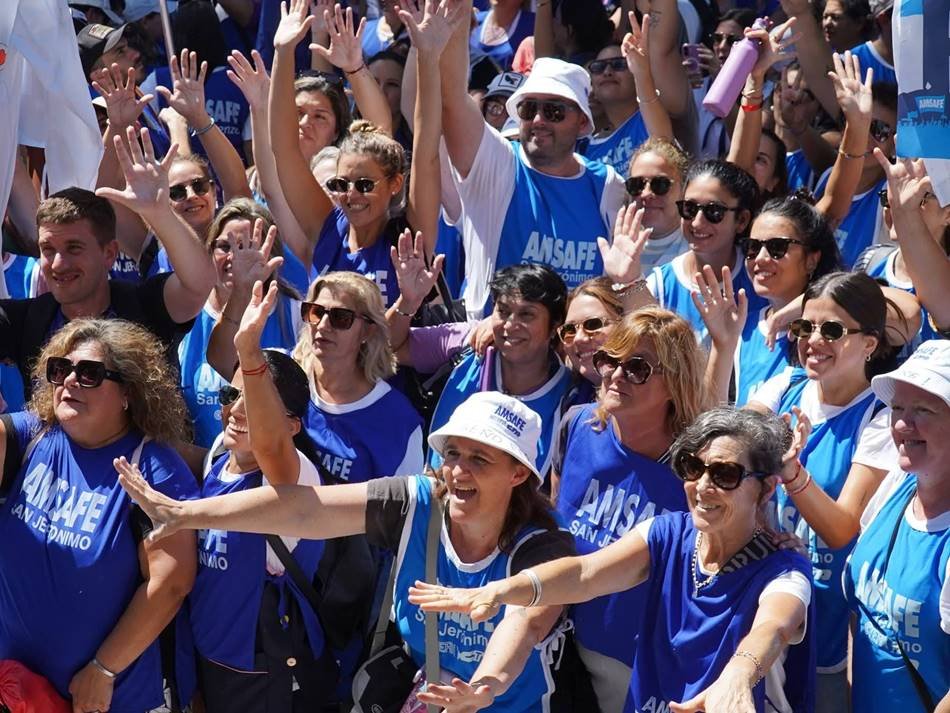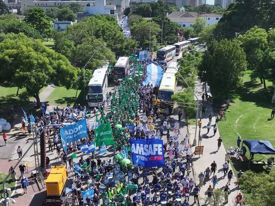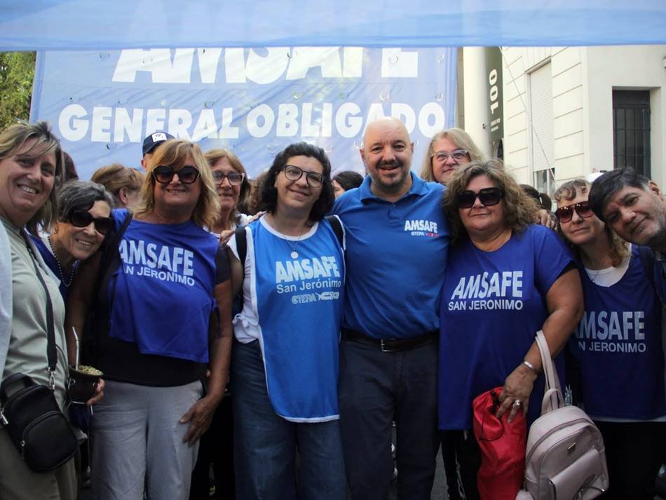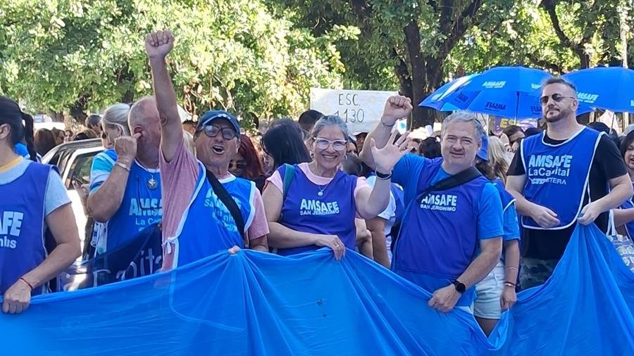 Desde las primeras horas del día, docentes del Departamento San Jerónimo partieron hacia la capital provincial «para encontrarnos en una jornada que expresa organización, unidad y decisión de sostener el plan de lucha frente al ajuste, la pérdida salarial y las políticas que afectan tanto a trabajadores activos como jubilados. Hoy paramos y marchamos para defender el salario, las condiciones dignas de trabajo y nuestro sistema previsional», sostuvo en redes sociales la delegada seccional María José Alonso.