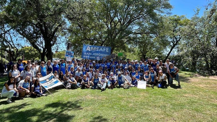 En el marco de las medidas de fuerza resueltas colectivamente, desde el gremio AMSAFE llevaron adelante este 2 de marzo un paro provincial con movilización en la ciudad de Santa Fe y al que también se sumaron SADOP y docentes universitarios.