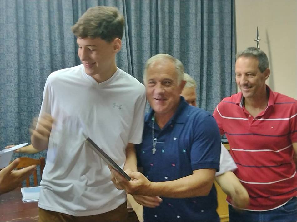 Por su parte, el basquetbolista Felipe Minzer, de 15 años, recibió este tipo de homenajes por primera vez, lo que «significa un orgullo que lo hagan, como es un orgullo representar tanto a la Argentina como a Gálvez, intentando dejarlo lo más alto posible». «Fue un año muy duro de entrenamientos, es la edad de salir y la verdad, no salí mucho por los entrenamientos, pero cuando me pongo un objetivo, intento lograrlo dejando atrás las demás cosas», destacó con madurez, mencionando su paso por la selección de la categoría: «Cuando me llegó el aviso de que estaba en la preselección me puse muy contento, y cuando me dijeron que quedé entre los 12, fue algo impensado… Es un sueño que cumplí hace poco, porque yo creo que es el de todo deportista, de representar a la Argentina, así que estuve feliz y sin nervios, haciendo lo que tengo que hacer».