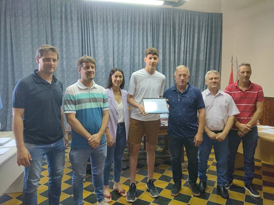 En una nueva sesión ordinaria del Concejo Municipal, donde asumieron las autoridades para el nuevo período legislativo (NOTA EN DESARROLLO), el Deliberativo local entregó reconocimientos al nadador Aquiles Balaudo y al basquetbolista Felipe Minzer, ambos jóvenes deportistas de la ciudad.