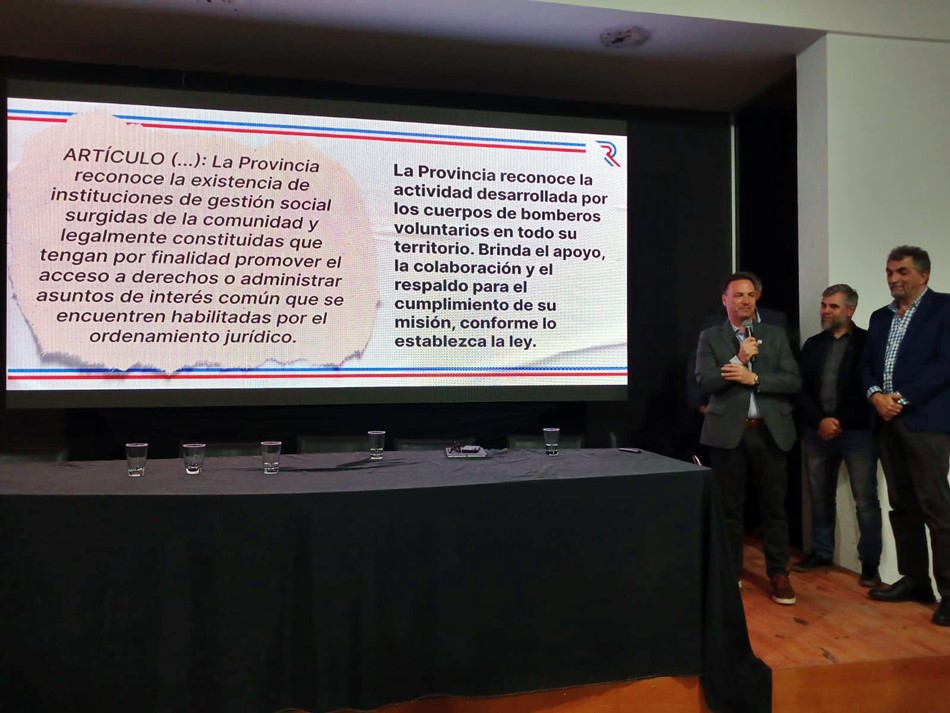 También hizo referencia a la incorporación de un artículo destinado a Bomberos en la Constitución Provincial: «Todo cerró anoche en la convención constituyente, sesenta y nueve constituyentes pensamos que Bomberos Voluntarios esté dentro de nuestra Constitución, una constitución que estamos reformando y que va a servir para futuras generaciones. Ojalá sirva y les sea útil y lo tengan que reformar dentro de mucho tiempo, pero la palabra bomberos voluntarios va a calar hondo como está calando en nuestra sociedad… Es muy representativo, y sobre todo habla de la visión que tiene el gobierno provincial hacia esta institución que tanto ayuda».