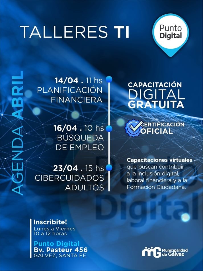 Para más información, la institución habilitó un canal de comunicación directo a través de Instagram en la cuenta: @puntodigitalgalvezsantafe (todo junto), donde se publican la oferta académica actualizada y los links de inscripción.