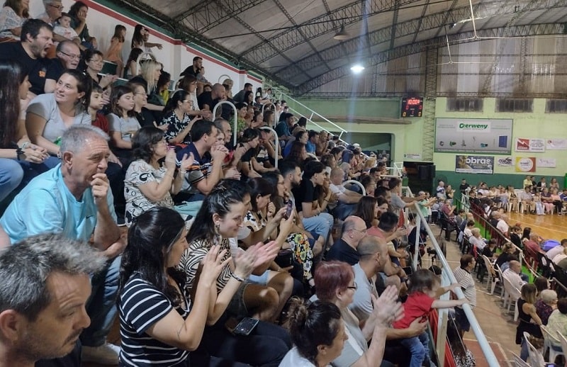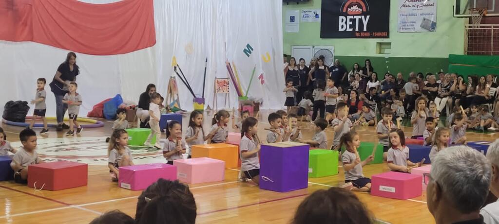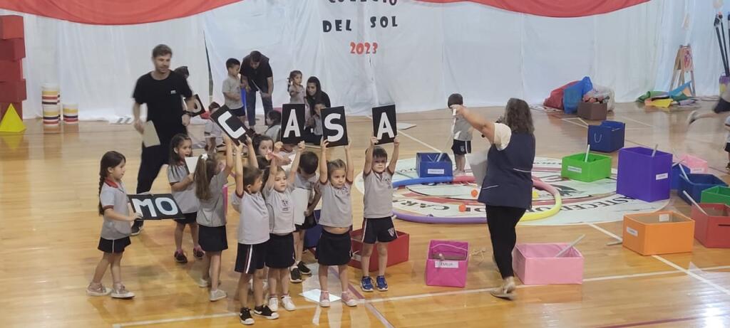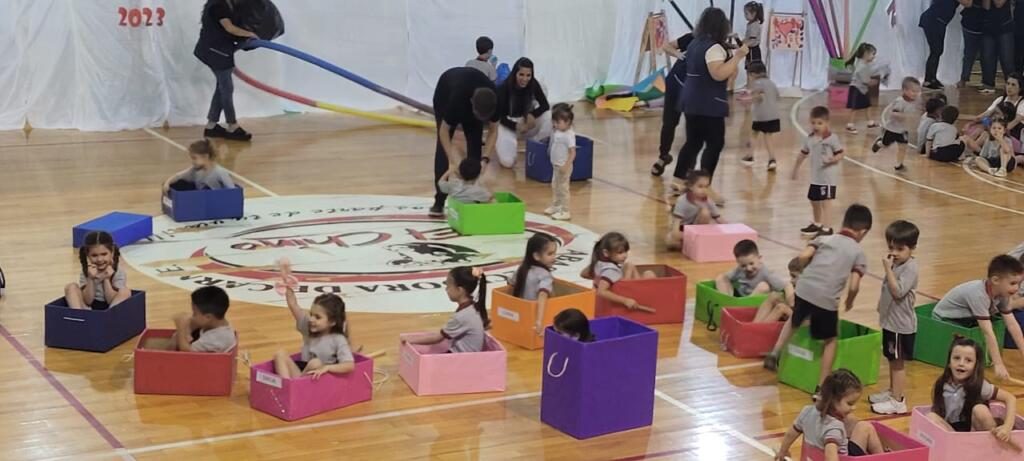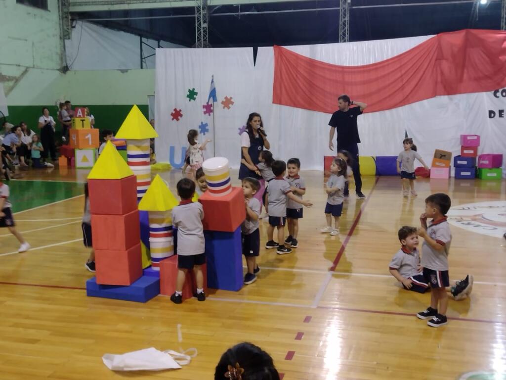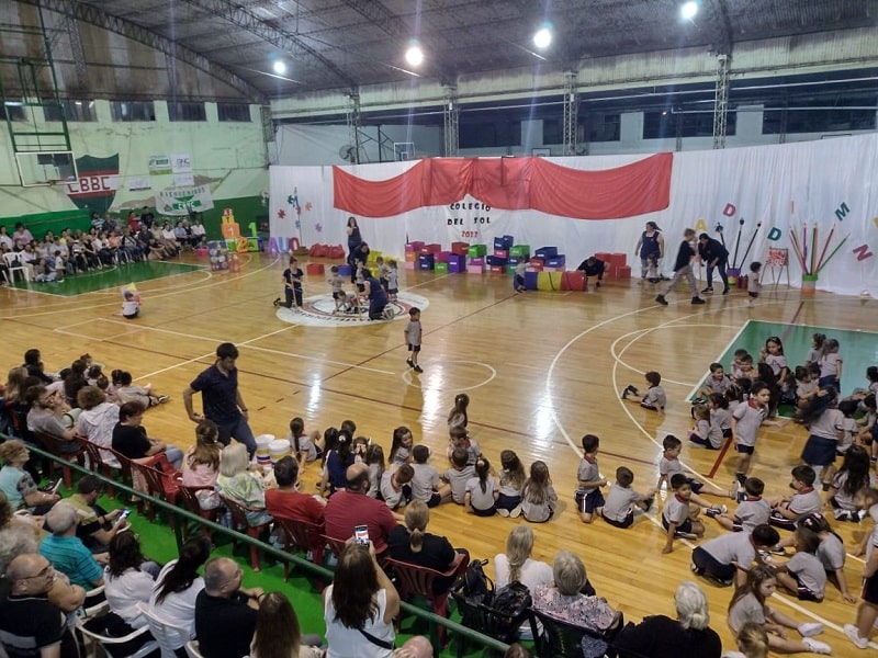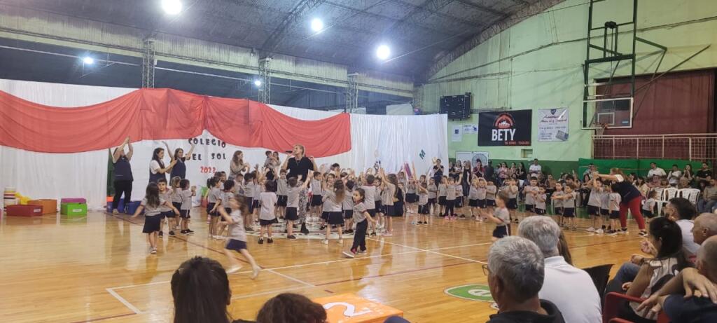 El nivel inicial del Colegio del Sol N°1409 realizó el cierre del ciclo lectivo 2023 el miércoles por la noche en el Club Centenario. Con la presencia de las familias y docentes se dio comienzo al encuentro con un circuito de Educación física a cargo del Profesor Nicolás Aragno. Aquí los asistentes pudieron ver la progresión en el desarrollo de la motricidad gruesa en las diferentes salas del jardín.