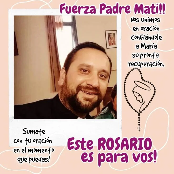 A través de las redes sociales, se invita a continuar una cadena de oración y el rezo del Santo Rosario, para pedir por la recuperación del sacerdote, un hombre comprometido con los pobres y muy conocido por las misiones que ha realizado.