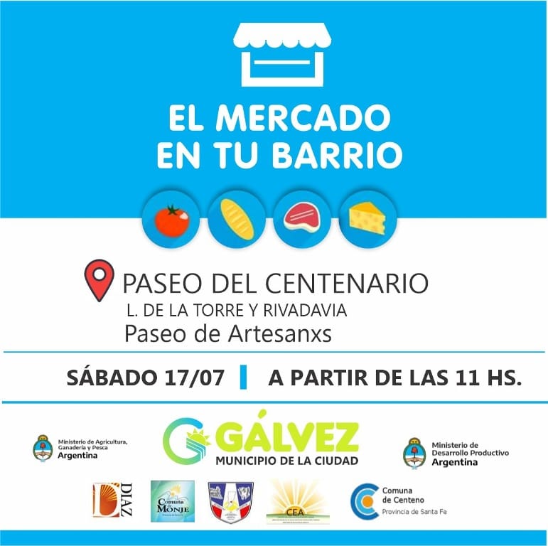 La primera edición de «El Mercado en tu Barrio» se llevará a cabo el próximo sábado 17 de julio a partir de las 11 horas en el Paso del Centenario (L. de la Torre y Rivadavia) frente a los Galpones Cerealeros.