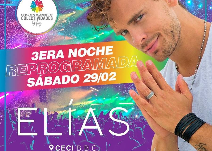 La tercera noche de la 6ta Fiesta Departamental de Colectividades «Cultura y sabores del mundo» se llevará a cabo el próximo sábado 29 de febrero en las instalaciones del Ceci BBC. «Elías», el reconocido cantante que debía hacer su presentación en la fallida última noche, confirmó su presencia para dar el cierre al tradicional evento con un show acústico.