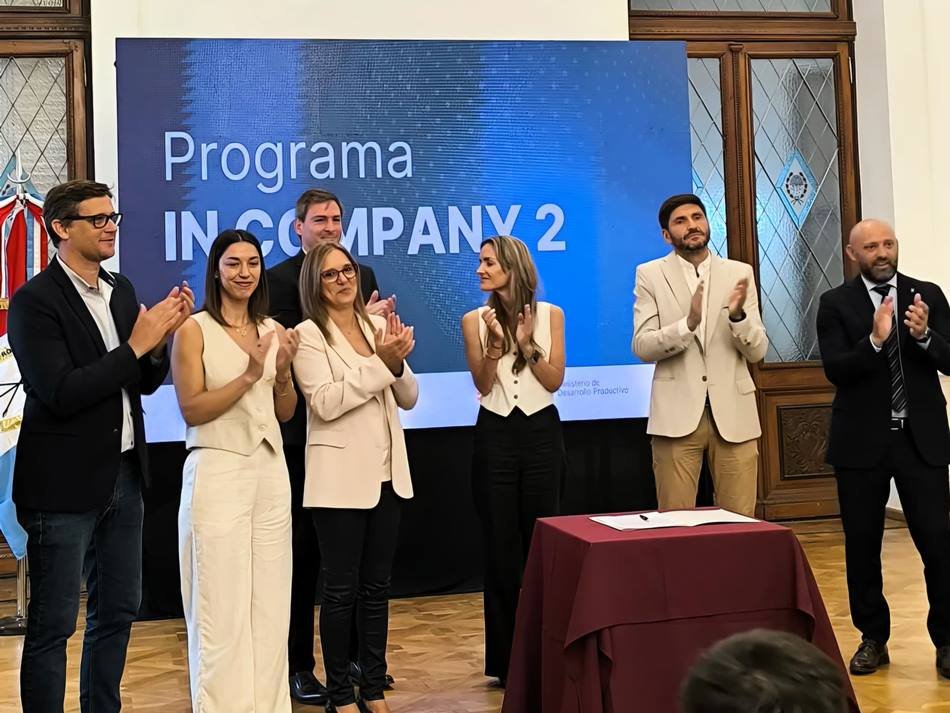 Junto al gobernador de Santa Fe Maximiliano Pullaro; el ministro de Desarrollo Productivo, Gustavo Puccini; la secretaria de Comercio Exterior, Georgina Losada, y la secretaria de Producción de Gálvez, Virginia Vottero, presentaron en el Salón Blanco de Casa de Gobierno la segunda edición de In Company, un programa diseñado para que las pymes santafesinas puedan vender al mundo.