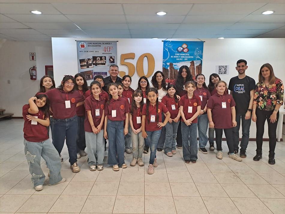 «Estamos con mucha alegría, porque es el año de nuestro 50 aniversario y empezamos nosotros, cantando con mucha alegría y mucho entusiasmo, mejor de lo que por ahí nos hubiéramos imaginado, con la compañía de la familia, de amigos, de vecinos de Gálvez, de amigos de coros de la ciudad, y también honrados por la visita de otros coros de niños, de instituciones muy prestigiosas, a las cuales recibimos», sostuvo el director del Coro de Niños y Adolescentes de nuestra ciudad, Cristian Anghilante, destacando que al cierre «vamos a compartir con todos los amigos que nos visitan unas ricas hamburguesas, en un modo de devolver un poco la atención por el esfuerzo que les ha implicado llegarse hasta acá, y luego ya nos quedará el resto del año para seguir celebrando estos 50 años con actividades con organismos o instituciones de aquí, del medio».