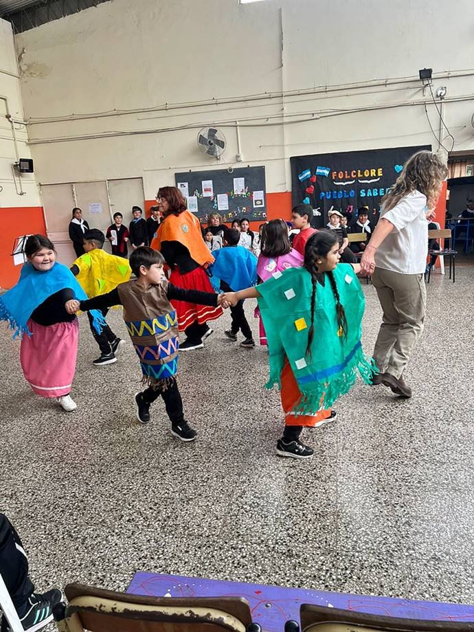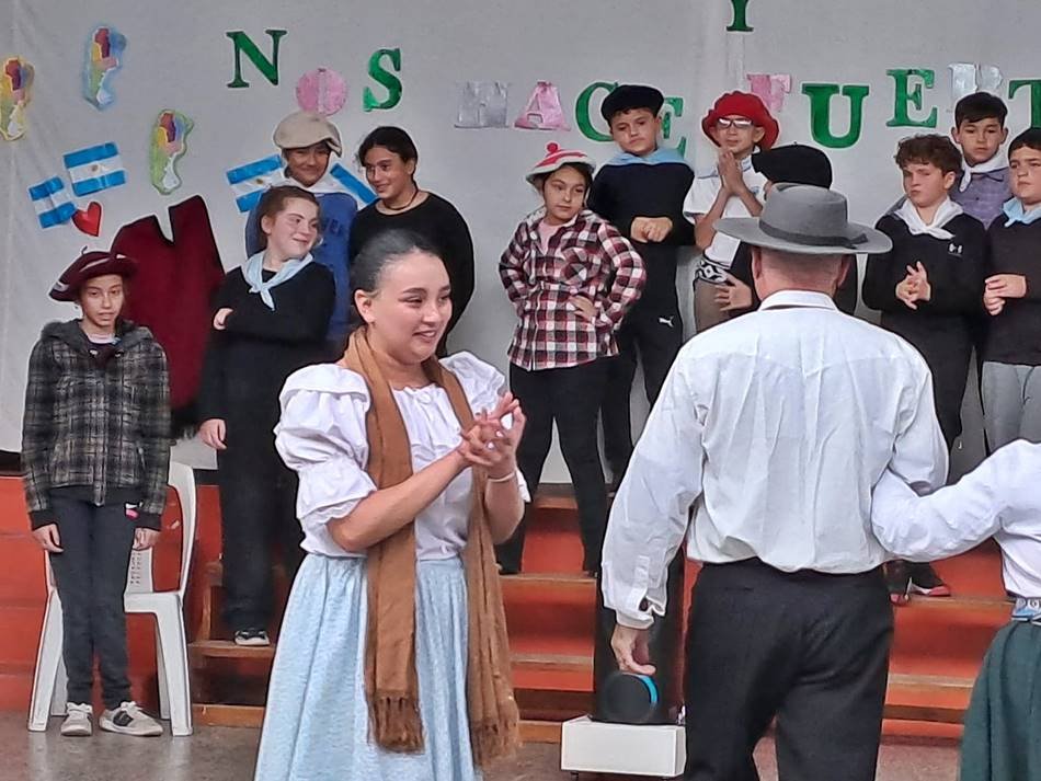 «Esto fue trabajado durante varias clases, no es algo improvisado -detalló Andrea-. También estamos trabajando la radio con Séptimo, entonces quisimos que esta presentación sea en realidad un programa de radio, donde había cronistas y periodistas en distintas regiones folclóricas. Cada región estaba representada por un grupo de alumnos de grado que bailaban o cantaban algo relacionado a esa región y tuvimos la alegría de que muchas familias, muchos papás se acercaron y también participaron cantando o bailando. Gálvez tiene mucha actividad folclórica y realmente eso está muy bueno verlo, porque por propias ganas se acercaron a bailar y a cantar».