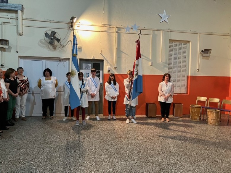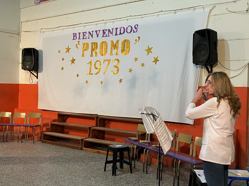 Durante la ceremonia, que contó con la presencia de las docentes de aquel entonces, la Directora de la Institución, Carina Berra, le dedicó unas palabras a la Promoción 1973 y alumnos de 5°A y 7°B interpretaron dos canciones con flauta y percusión acompañados por la Profesora de Música, Andrea Bruno.