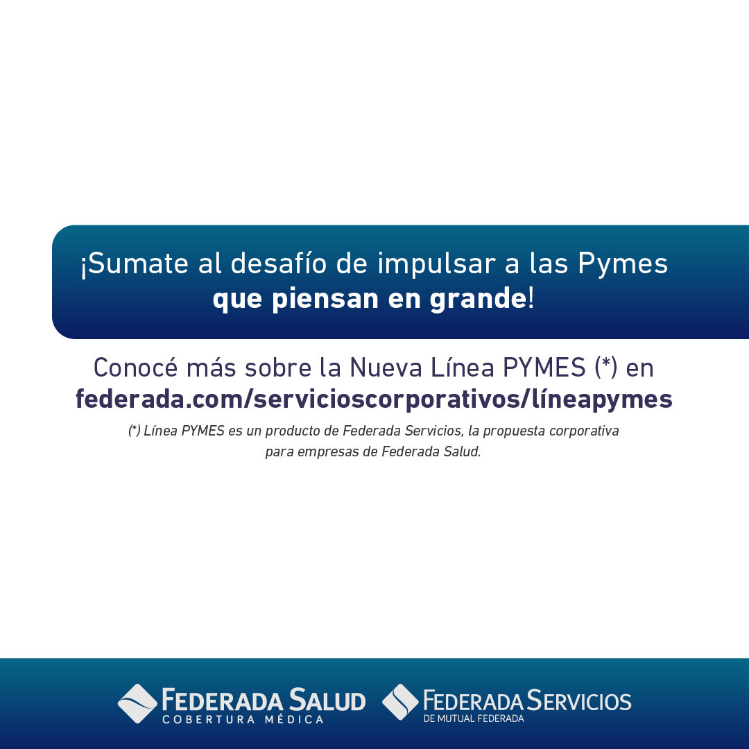 Con el objetivo de impulsar sus servicios de manera integral, la mutual lanzó hace poco tiempo Federada Servicios, propuesta orientada al segmento corporativo, que también apunta a contribuir al crecimiento equilibrado y sostenido de la organización. Como extensión de esta iniciativa y como un producto focalizado para aquellas organizaciones que cuentan con una escala menor, Federada Salud lanzó Línea PYMES.