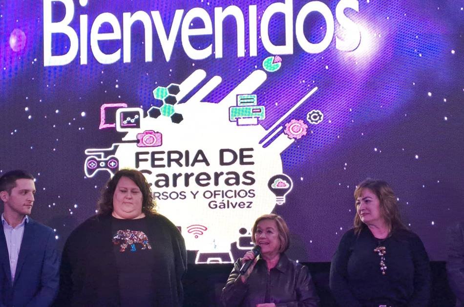 «Crecer y el año que viene redoblar apuestas, como decía Gisela recién en un saludo, para seguir logrando más. Ése es el objetivo… Hoy estoy en representación de Gisela, que lamentablemente por su trabajo, porque lo demanda el cargo que ocupa, no pudo estar presente y se quedó con muchas ganas, pero para nosotros es un orgullo dar inicio a esta séptima edición de la Feria de Carreras, Cursos y Oficios de la Ciudad de Gálvez», sostuvo Virginia Vottero, subsecretaria de Acciones Institucionales de la Provincia, «nosotros creemos que la Feria es el camino de encuentro entre los expositores, las instituciones educativas, las universidades, los centros de capacitación, los clubes y todos los jóvenes que hoy van a estar paseando por la Feria, porque es acá donde pueden empezar a construir sus sueños y sus proyectos a futuro. Y creemos que acá están las herramientas para poder llevarlos adelante».