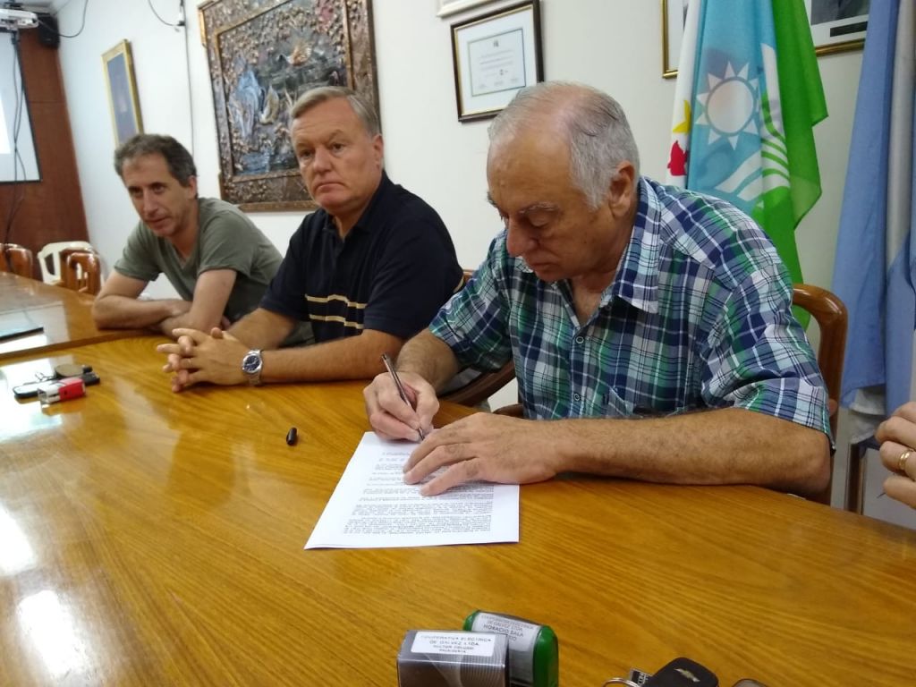 La firma del convenio entre la Municipalidad y Cooperativa Eléctrica para instalar WiFi en la Plaza del Cooperativismo se llevó a cabo este viernes por la mañana. Del encuentro participaron el intendente de la ciudad, Ing. Mario Fissore, junto al secretario de gobierno, Gustavo Parisi, el presidente del Consejo Directivo Héctor Colussi y el secretario Horacio Sala.