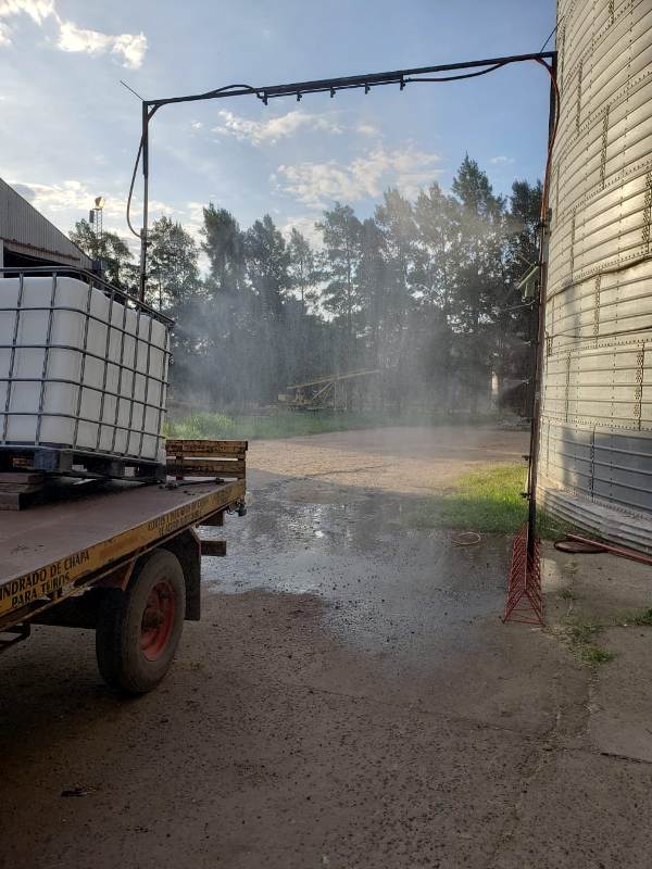 Con la intención de colaborar en el control de los ingresos de camiones, el productor galvense junto a sus hijos proyectó el dispositivo que ya está ubicado en la entrada principal de Bernardo de Irigoyen, para cumplir con la desinfección de todos los vehículos que ingresan al pueblo.