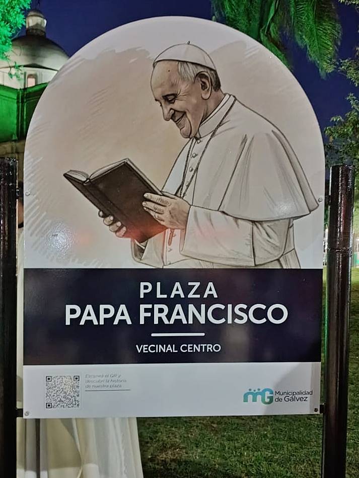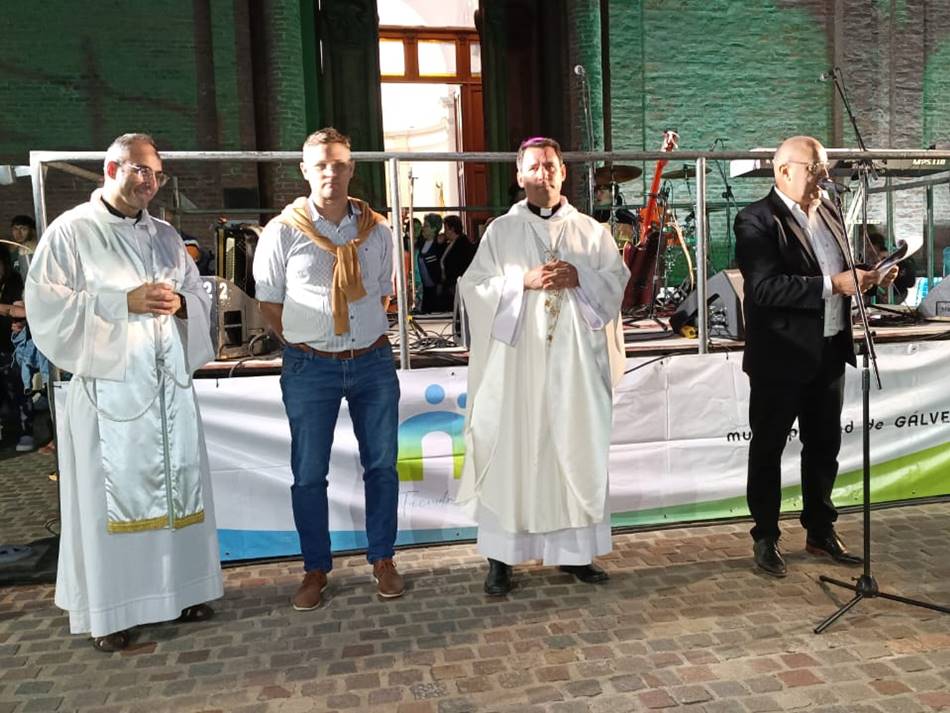 La actividad religiosa estuvo presidida, además del padre Carlos Magnano, por el arzobispo auxiliar Matías Vecino, quien se mostró complacido «en venir, me da mucha alegría, un poco por Carlos, que la verdad que somos muy amigos y lo quiero un montón, pero además porque es una comunidad donde siempre las celebraciones son siempre muy alegres, muy festivas, así que uno se siente bien recibido». También se refirió al nombre que ahora lleva la «plaza de la Iglesia»: «Me alegra mucho que a un argentino tan importante en la historia de la humanidad, se le pueda hacer este reconocimiento acá en la comunidad de Gálvez, es muy lindo, y que sea también comprometedor, que no quede solamente en un gesto formal, digamos, sino que a su magisterio, su enseñanza, ojalá que la sigamos leyendo, meditando y que nos ayude a todos a crecer».