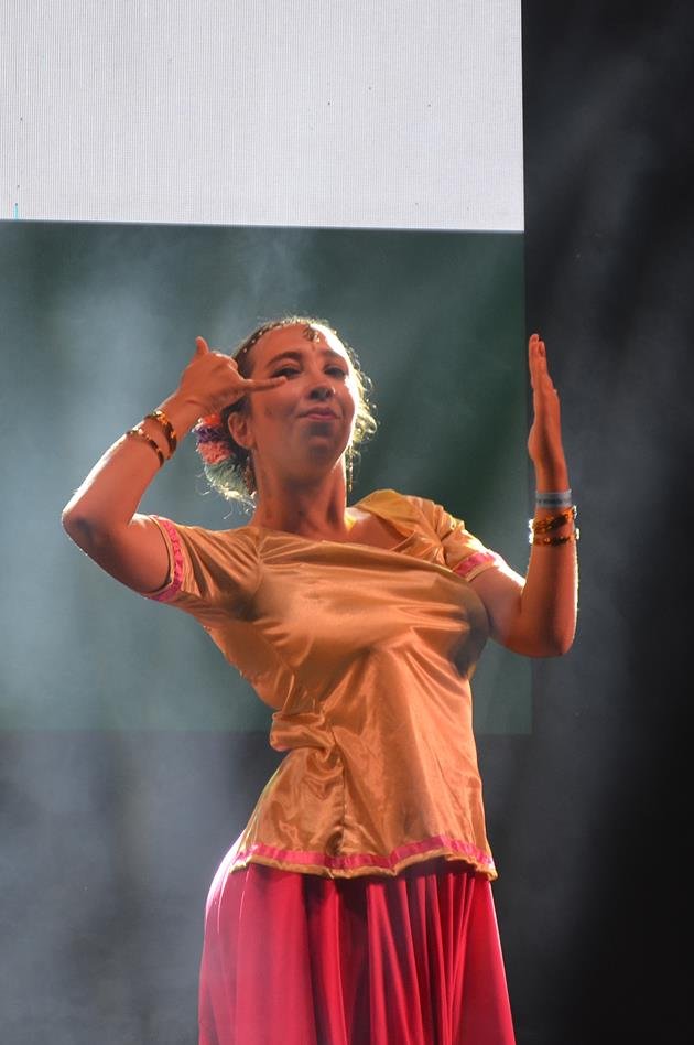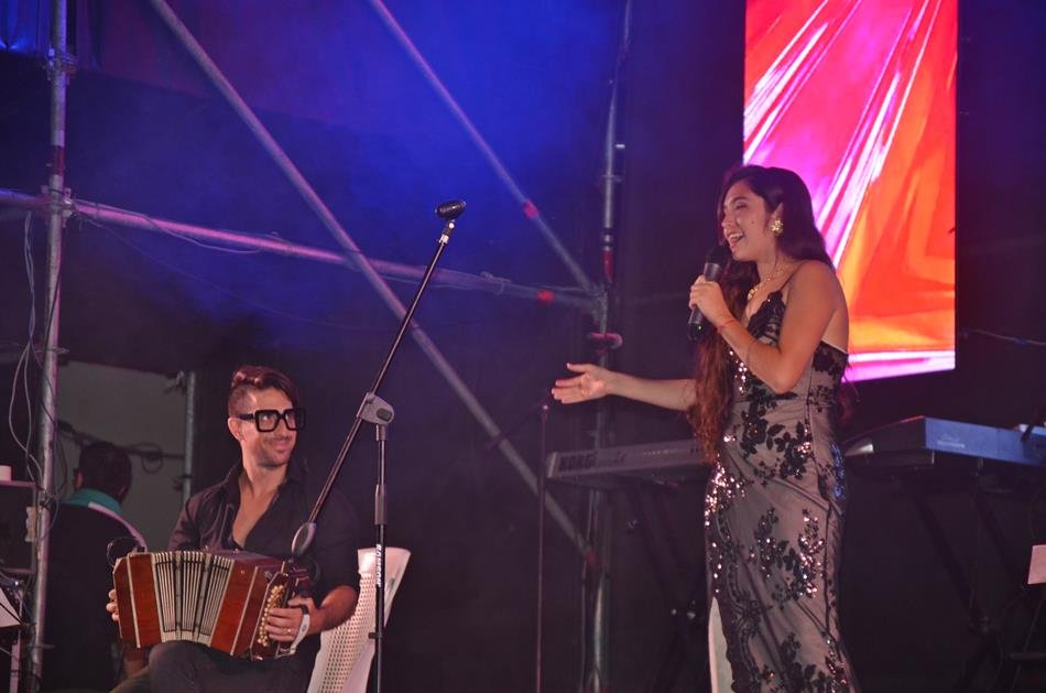 Para la medianoche, pisó fuerte el escenario la joven cantante de tangos Milagros Amud, en su primera presentación en la provincia. Milagros, reconocida por ser en 2025 la finalista del equipo Soledad en LA VOZ Argentina, llegó a la ciudad a través del productor de eventos local Ariel Denegri, y presentó una selección de canciones que hizo cantar, bailar y aplaudir con ganas al público que la observaba. Con simpatía, se ganó el cariño de los presentes, y vale destacar que la acompañaron en bandoneón el galvense Ignacio «Nacho» Mezzadra y mostrando su arte el profesor Antonio Albil y su pareja.