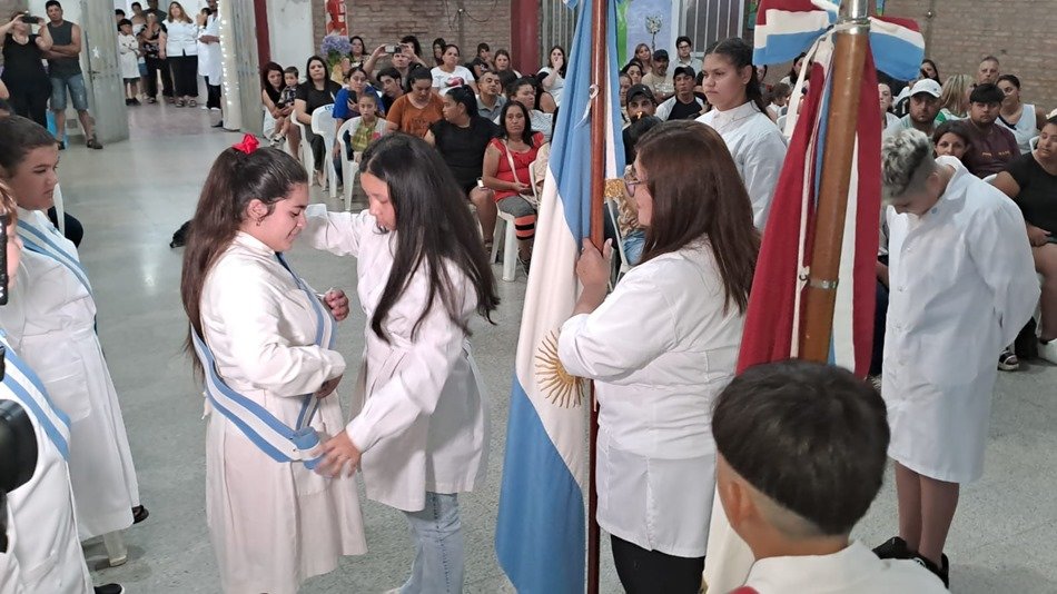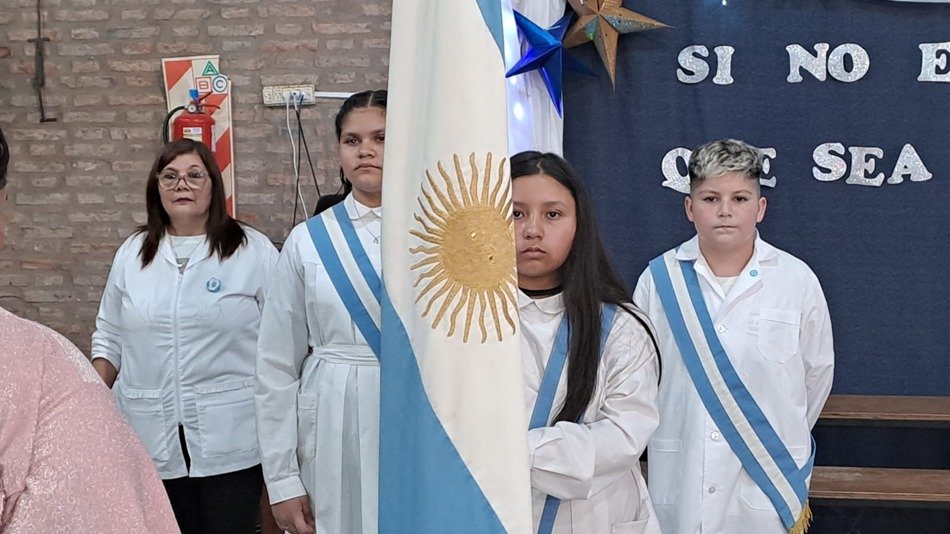 Luego del ingreso de los graduados, se realizó el cambio de abanderados, quienes recibieron diplomas del Club de Leones, para entonces sí aplaudir los presentes a los egresados de este año. Los despidió con emoción la seño Nora González -que les dio clases desde primer grado- y destacó la solidaridad del grupo. Hubo también entrega de reconocimientos a alumnos destacados, como así los propios estudiantes leyeron unas palabras dedicadas a la escuela.