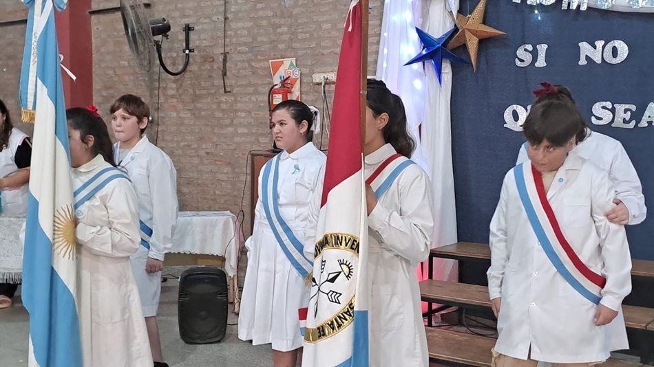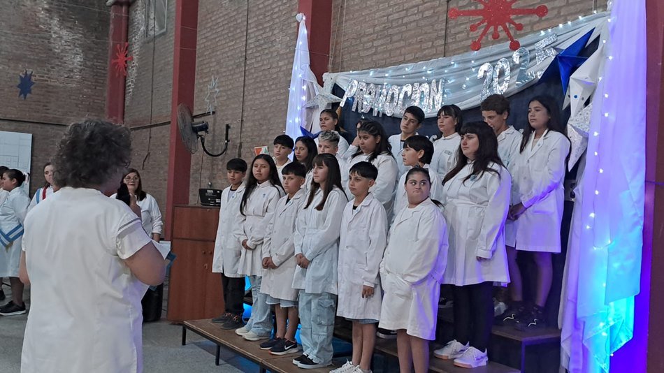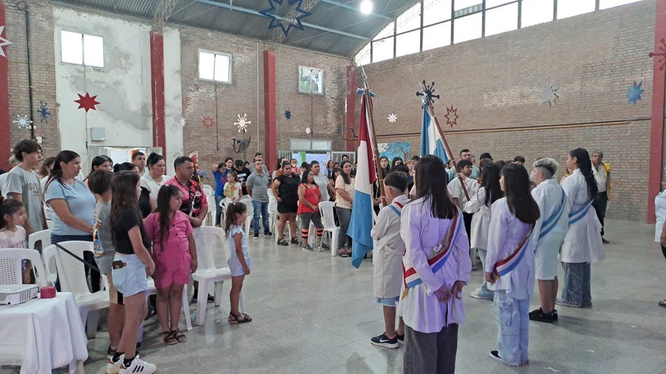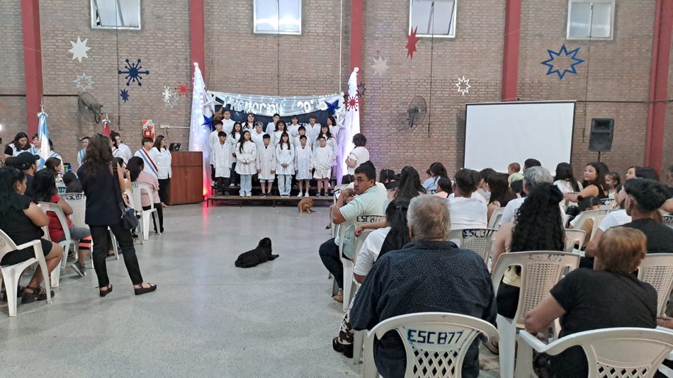 En el SUM del establecimiento educativo, la Escuela Nro. 877 «Domingo Faustino Sarmiento» llevó adelante este jueves su acto de promoción de Séptimo Grado 2025.