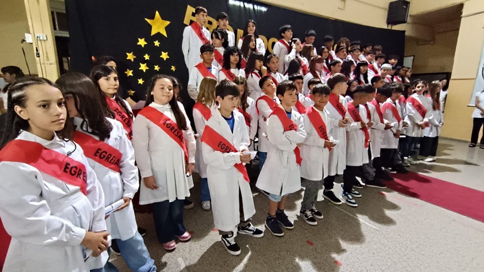 Este martes, y con el telón de fondo que rezaba PROMOCIÓN 2025, se vivió en la Escuela nro. 6034 la graduación de Séptimo Grado de la institución educativa.