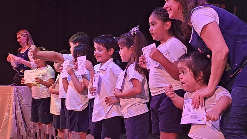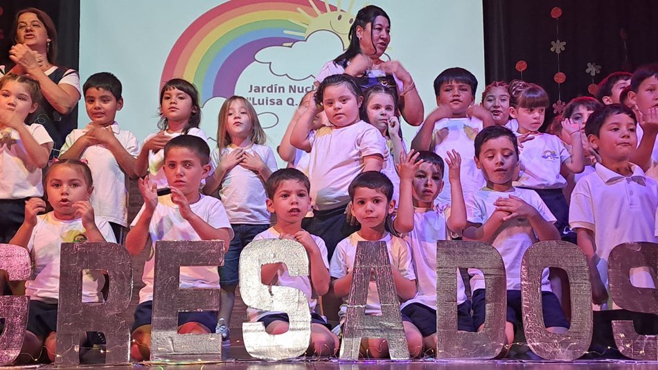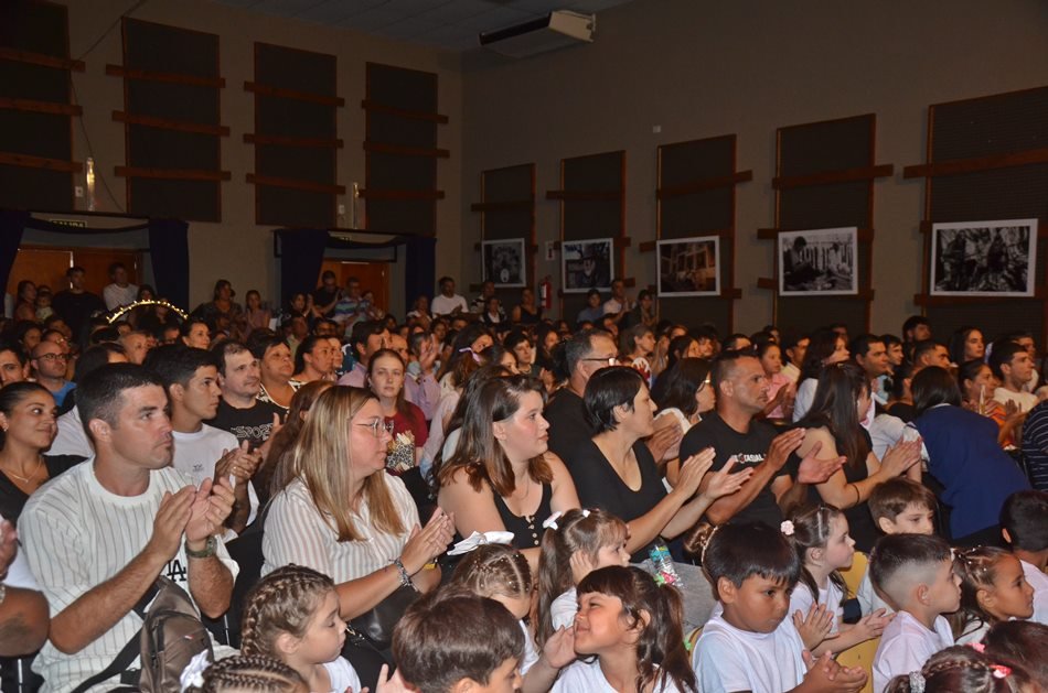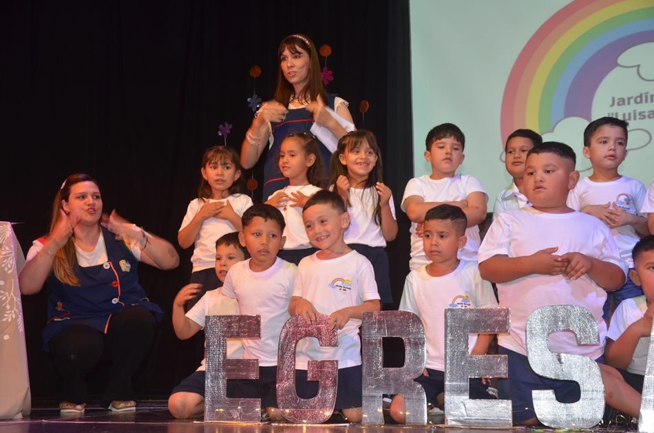 Les dijeron adiós la directora de la institución, Silvina Zurschmitten, y sus seños, al tiempo que los niños obsequiaron felices a sus familias, una canción.